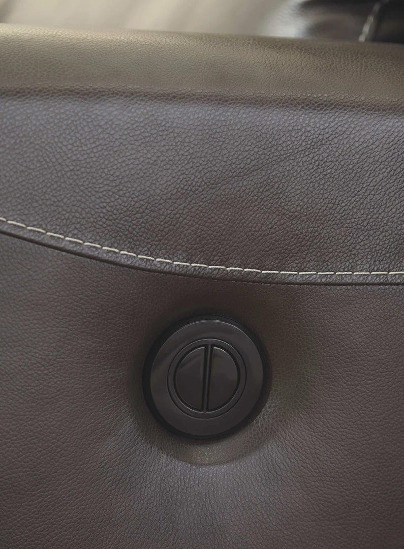 Sink into this supple power recliner and prepare to be swept off your feet—literally. Extra-wide seat and plush cushioning are divinely comfortable. The seating area is wrapped in decadently soft leather for a luxurious experience, while a perfect leather-match upholstery on the exterior saves you money without sacrificing style. Prominent stitching, linear track arms and a goes-with-anything gray hue add stylish touches.