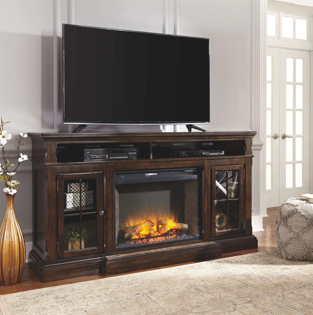 Roddinton – Dark Brown – Xl Tv Stand W/fireplace Option