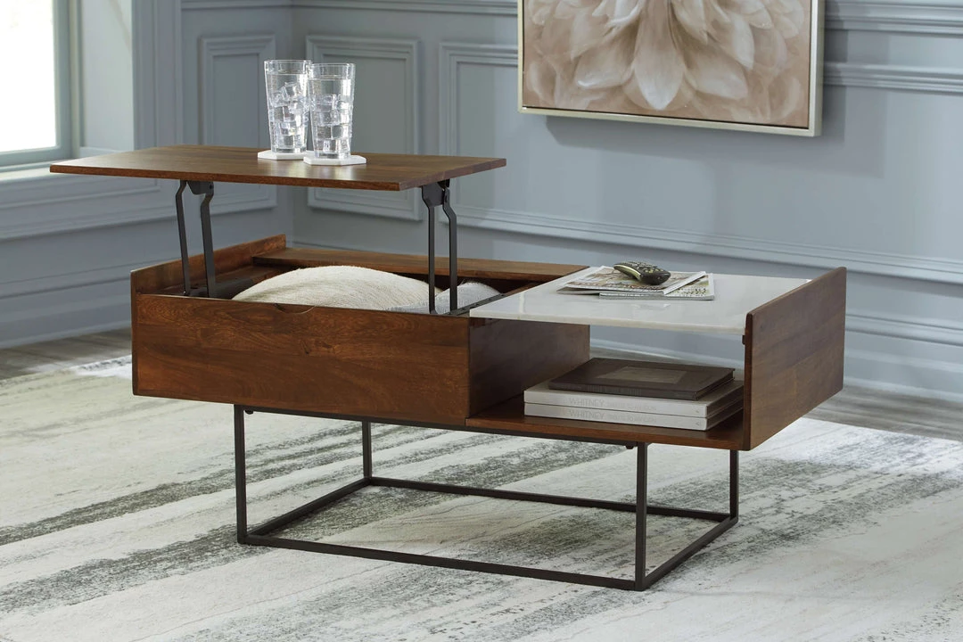 Rusitori – Brown / Beige / White – Rect Lift Top Cocktail Table