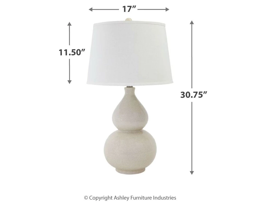 Turn onto a relaxed sense of elegance. Double gourd shaped base of this table lamp is simply gorgeous. Crackle glaze adds a rich layer of interest to the ceramic surface.