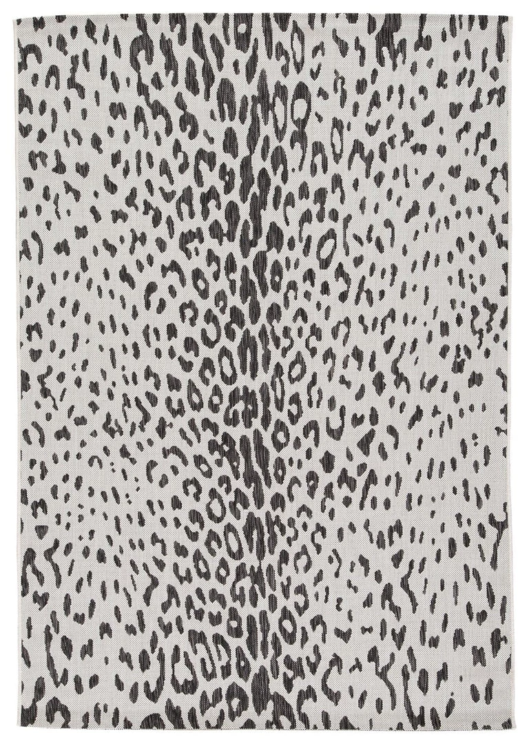 Go wild with this indoor/outdoor animal print rug. Thanks to its black, white and gray color palette, the area rug plays nicely with other hues. Place it on top of carpet or a natural-tone sisal rug for a layered look.