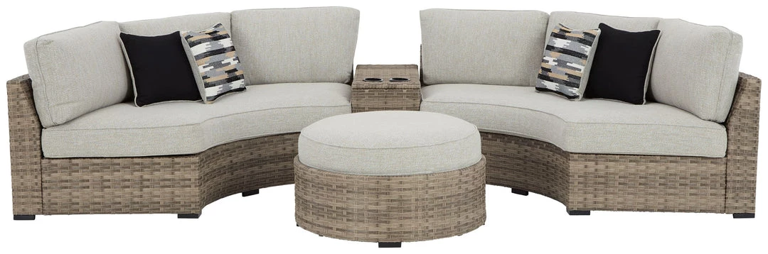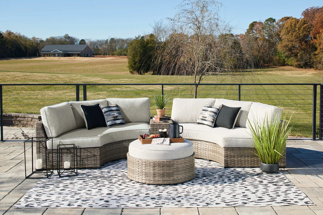 Aluminum frames. High performance Nuvella fabric. Unlimited modular options. P458-877 has four throw pillows. P458-861 has two throw pillows. Assembly required.