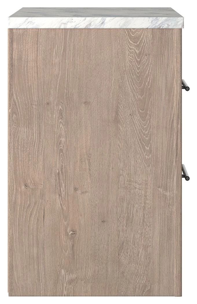 Cool, clean and casually modern. This nightstand’s light natural finish and faux Calcutta marble top set the tone for your calming sanctuary. Large linear pulls add dimension and authenticity. Two smooth-gliding drawers neatly accommodate your bedside needs.
