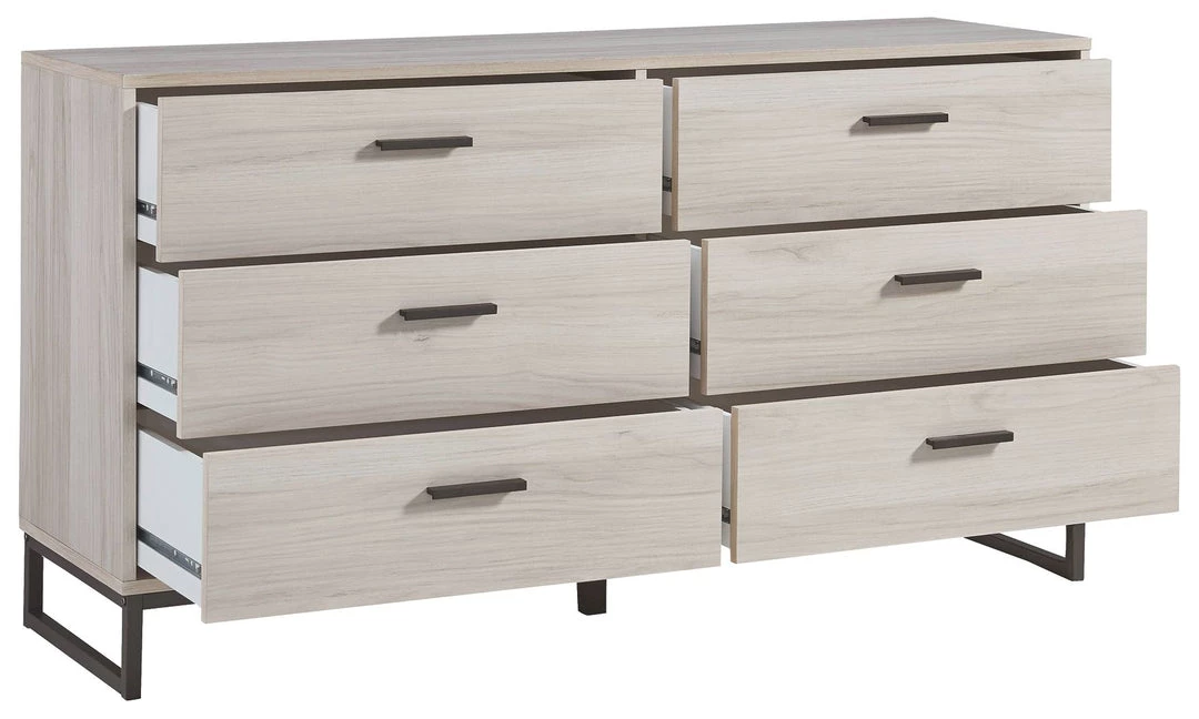 Light and bright, this dresser is inspired by chic design. A light natural finish over replicated oak grain offers an authentic touch to this so-cool piece. Beautifully blend the hues of natural living with the edginess of your modern lifestyle.