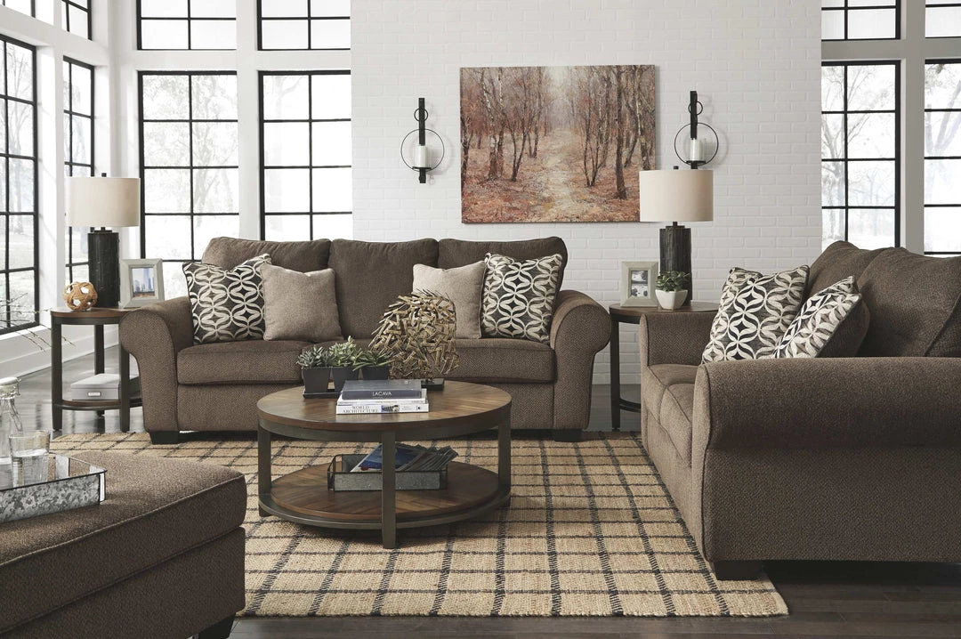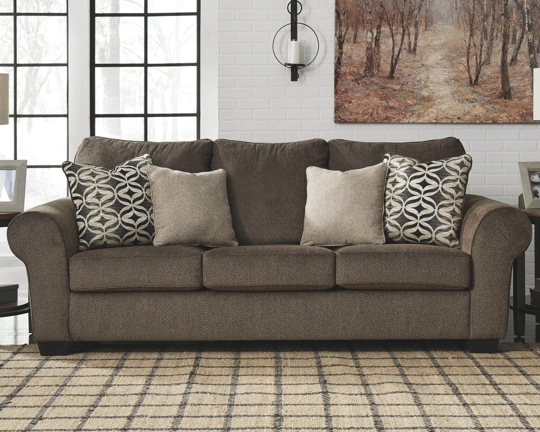 Once you settle into this sumptuous sofa you’ll wonder how you ever lived without it. Elements including softly rolled arms and textured chenille upholstery create the perfect relaxation destination. Quartet of toss pillows in complementary colors complete the chic, trendy look.