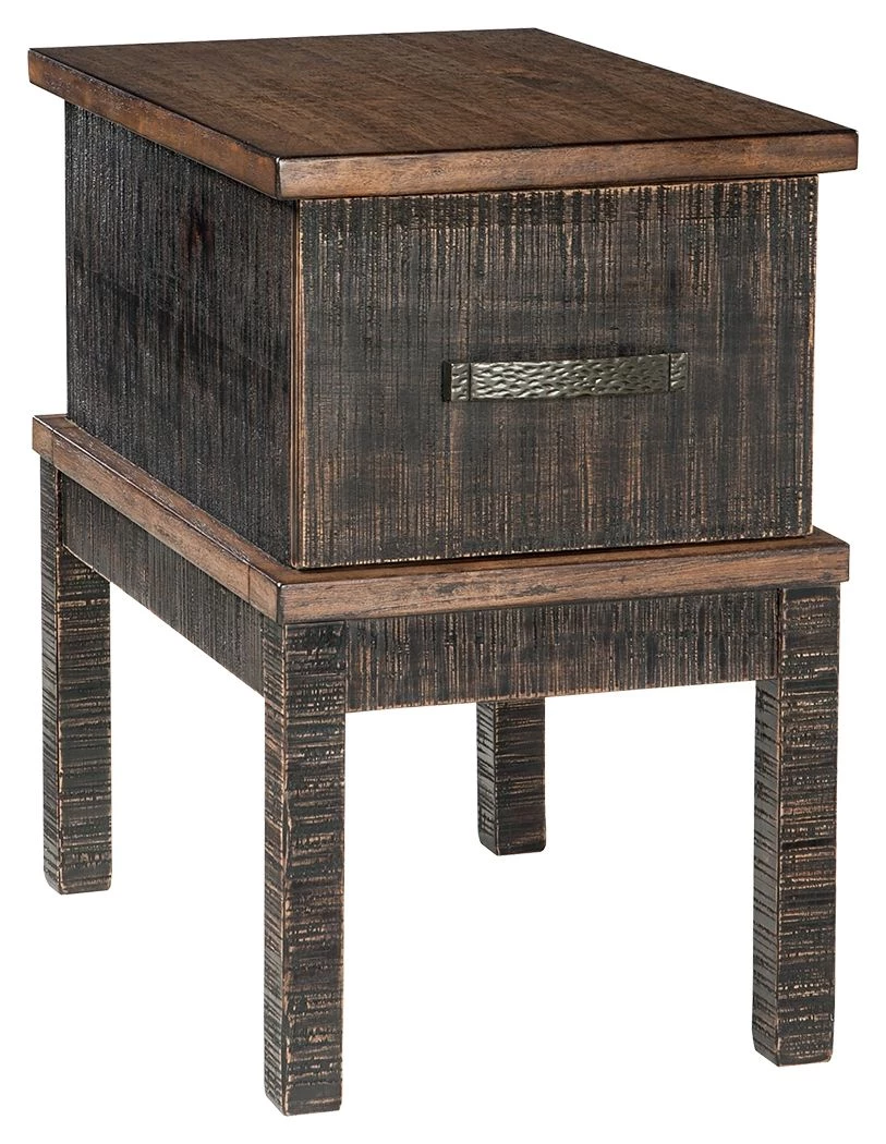 Earthy, rustic character. Clean, contemporary lines. The best of both stack up beautifully in this chairside end table. A simple, blocky profile is enriched with a two-tone finish with deep distressing for a decidedly different aesthetic. And with subtly placed power outlets/USB charging stations, it’s high design meets high tech.