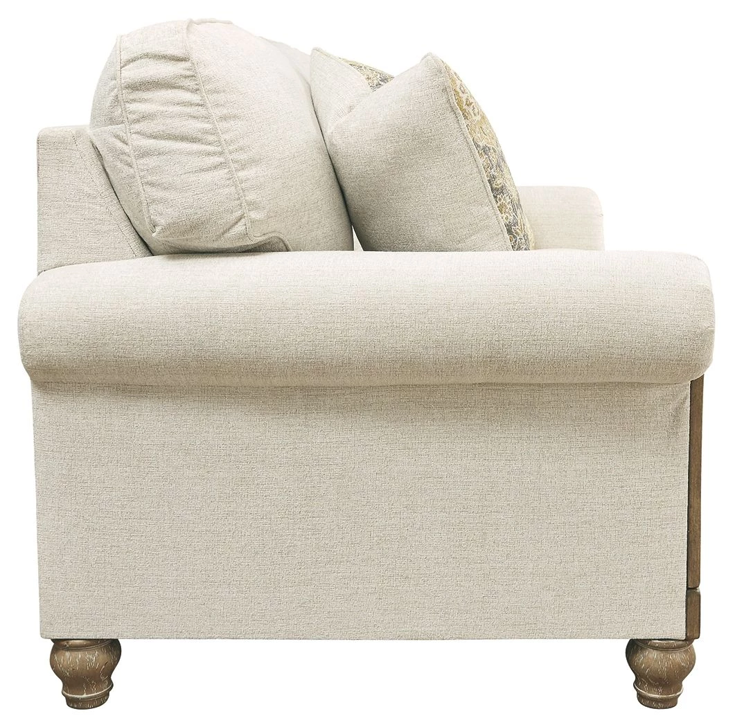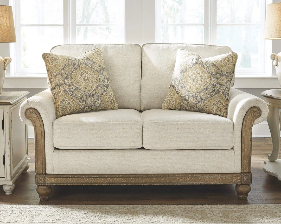 If you love traditional style—but want to leave the dark and heavier elements behind—this loveseat is such a delightful choice. Fresh elements include light-tone feet, rail and arm panels with a weathered patina look for heirloom charm. The linen weave upholstery is a natural complement for a multitude of color schemes.