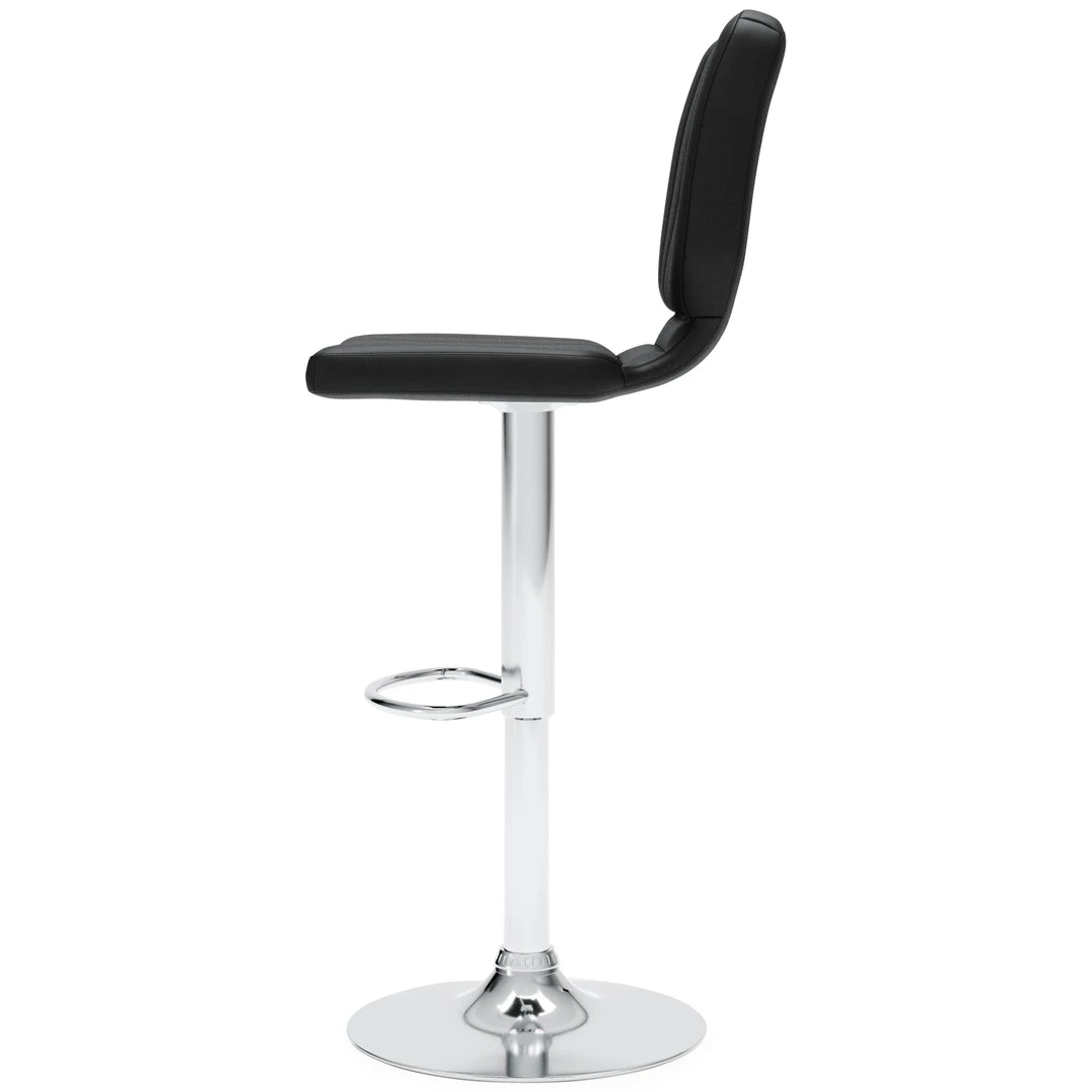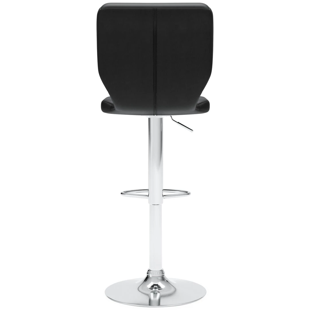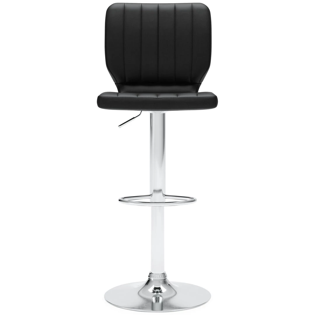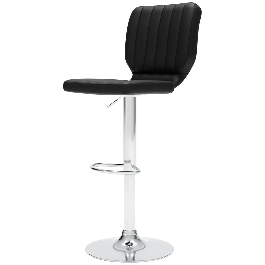 Have a taste for highly contemporary style? You’re sure to find this posh and polished bar stool something to savor. Crafted with a sturdy steel frame beautified with a brilliant chrome-tone finish, this designer bar stool caters to your comfort with an adjustable height feature and swivel pedestal base. The cushioned seat and backrest are covered in a feel-good black faux leather upholstery with channeled details that enhance its modern appeal.