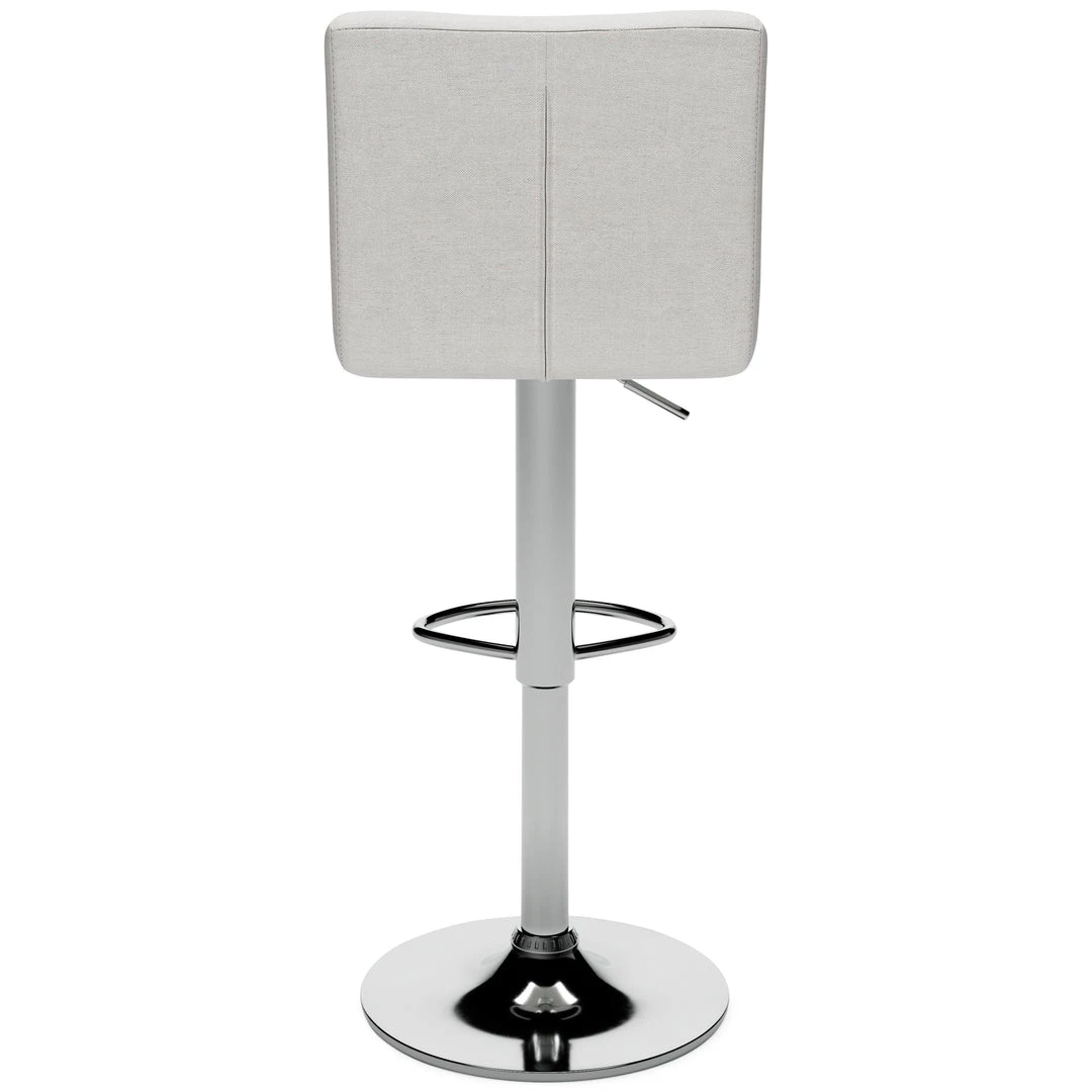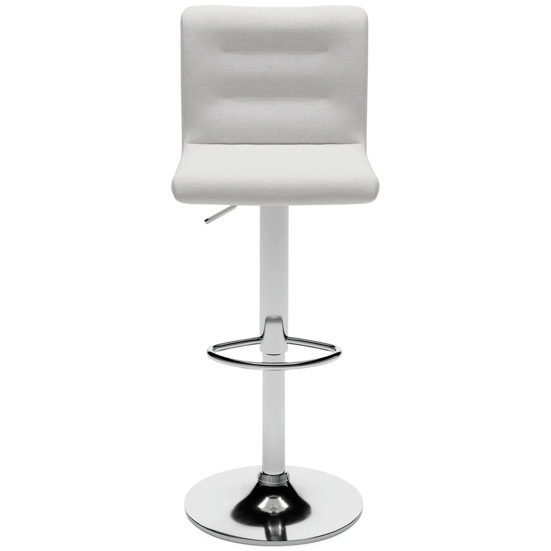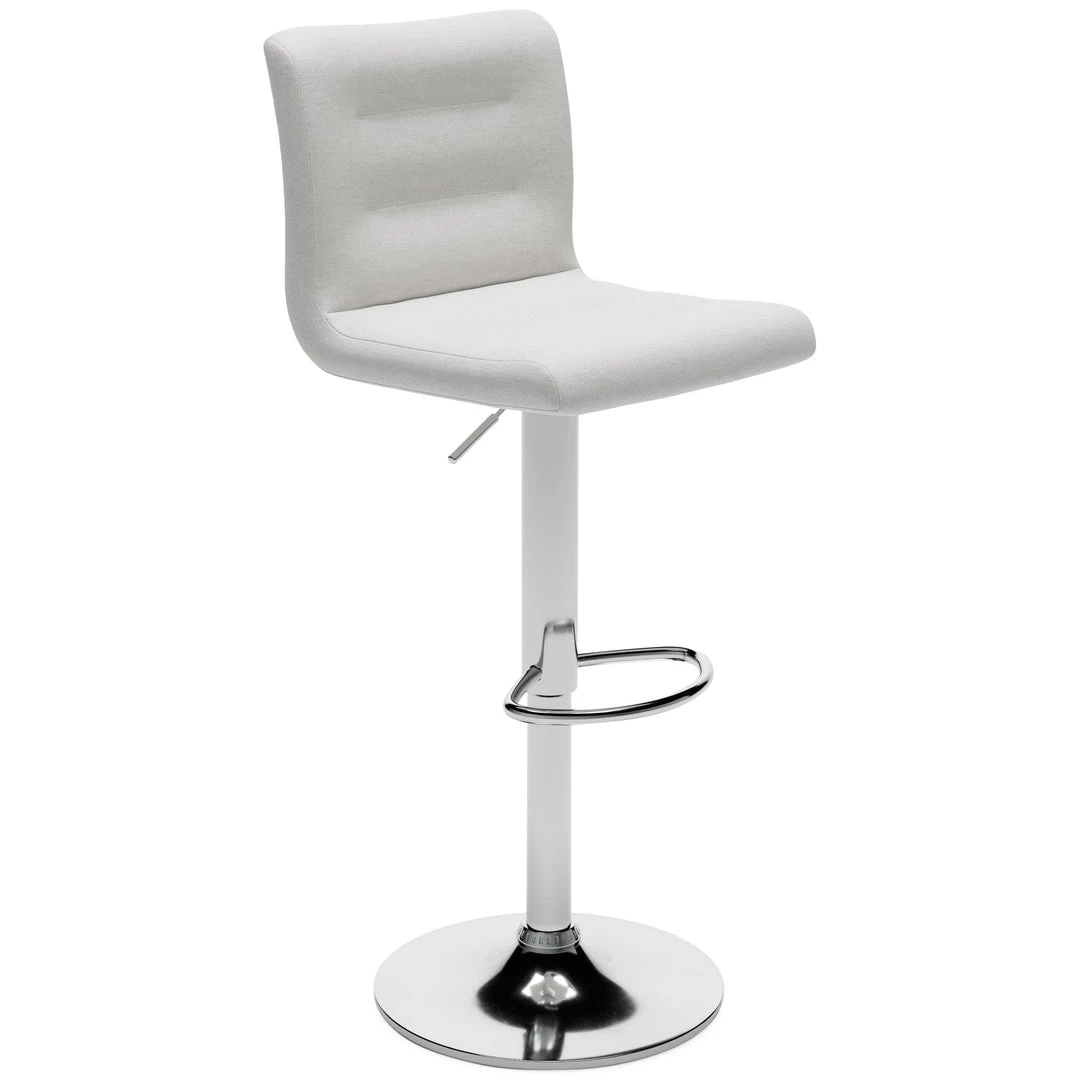 Have a taste for highly contemporary style? You’re sure to find this posh and polished bar stool something to savor. Crafted with a sturdy steel frame beautified with a brilliant chrome-tone finish, this designer bar stool caters to your comfort with an adjustable height feature and swivel pedestal base. The cushioned seat and backrest are covered in a feel-good stone color upholstery with channeled details that enhance its modern appeal.