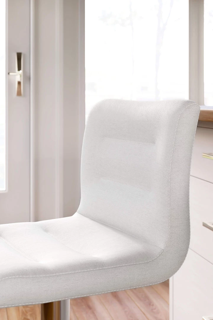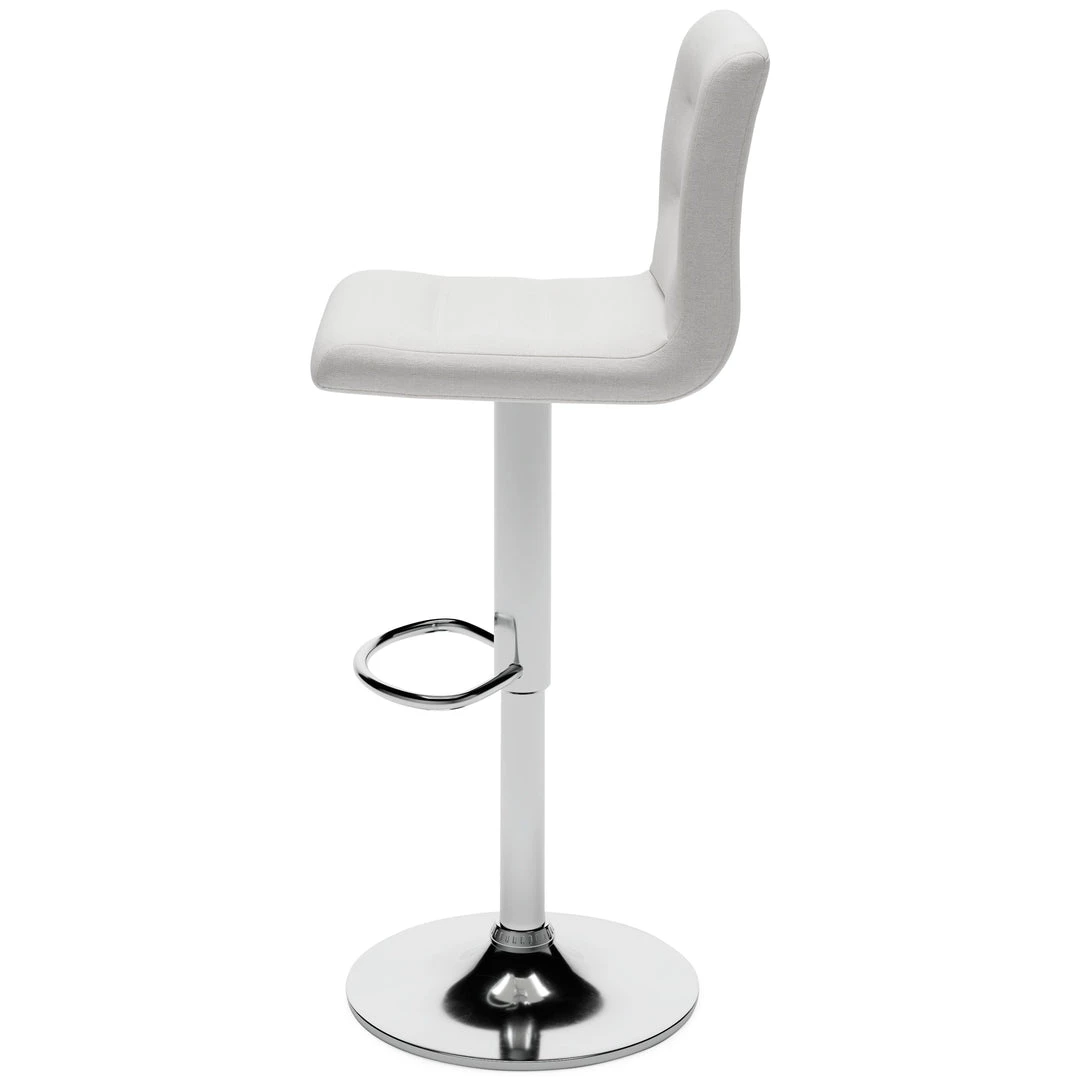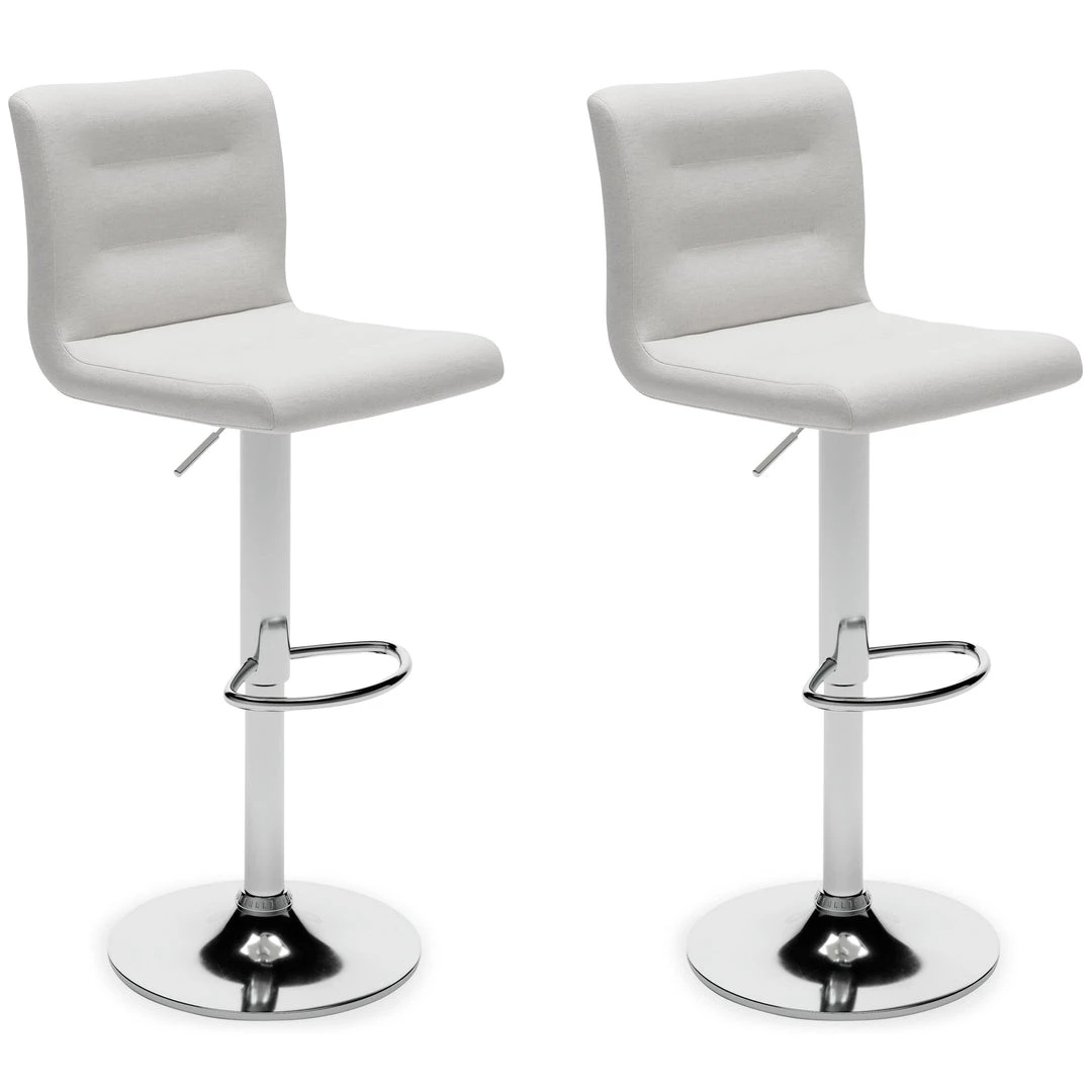 Have a taste for highly contemporary style? You’re sure to find this posh and polished bar stool something to savor. Crafted with a sturdy steel frame beautified with a brilliant chrome-tone finish, this designer bar stool caters to your comfort with an adjustable height feature and swivel pedestal base. The cushioned seat and backrest are covered in a feel-good stone color upholstery with channeled details that enhance its modern appeal.