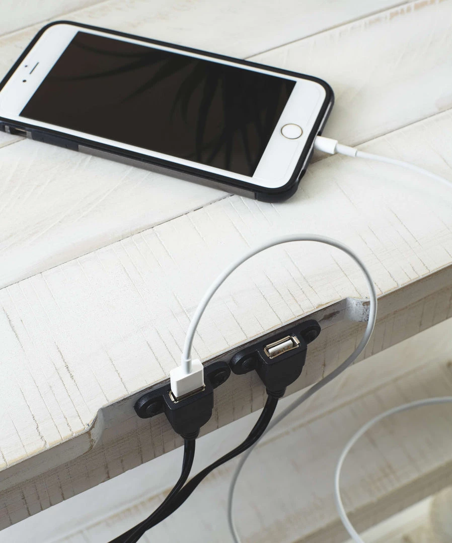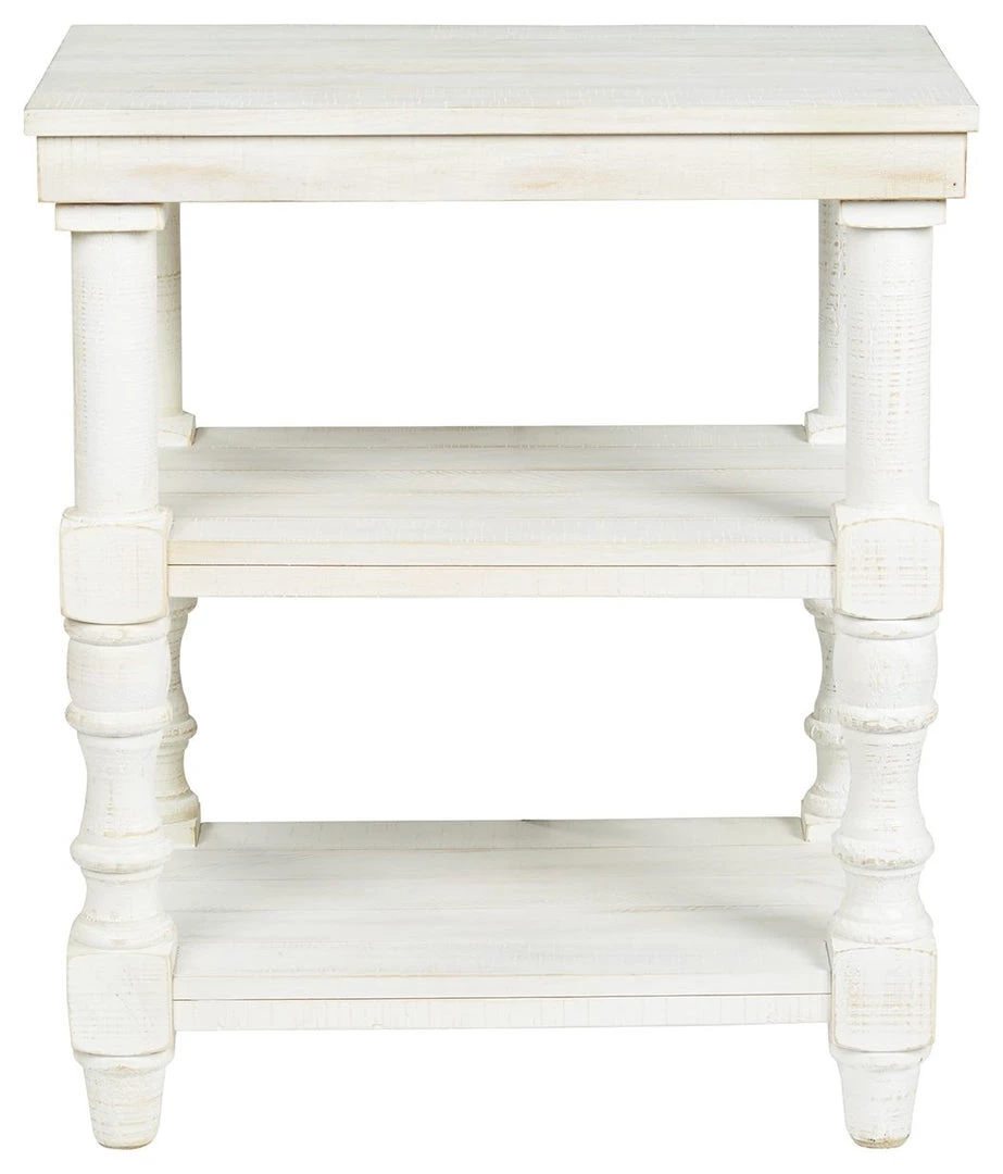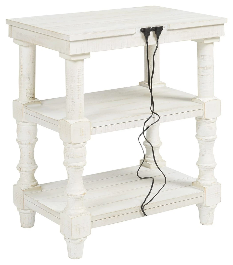 With its antique black finish, plank-effect styling and charming turned details, this accent table is sure to elevate the look and feel of a room. Whether you embrace traditional decor or fancy modern farmhouse style, this 3-tier table will look right at home. And with USB device charging, this accent table is right up to speed with your high-tech lifestyle.
