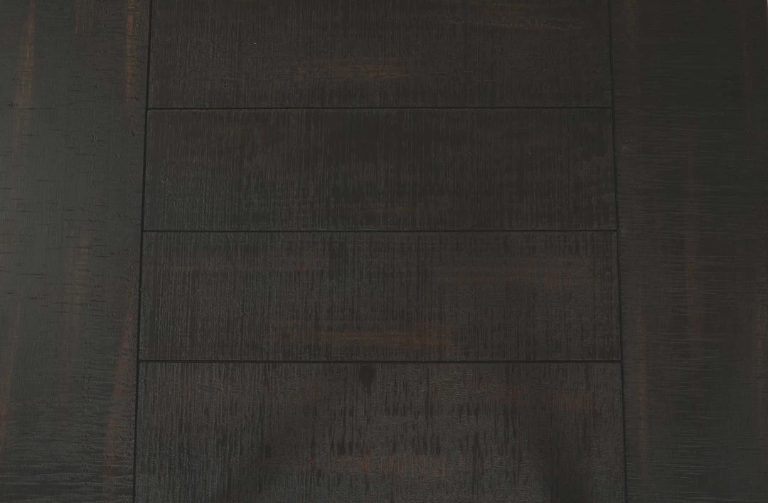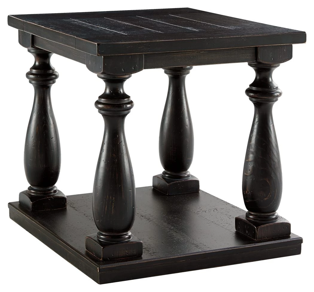This black end table has a dramatic presence—exactly what an eclectically styled room needs. Solid wood planks and thick veneer merge seamlessly together for a hearty helping of style. Handsomely turned legs connect to a lower shelf flush with the floor. A rustic wirebrush technique gives this stunning square end table in black with show-through contrasting just enough of a weathered sensibility.