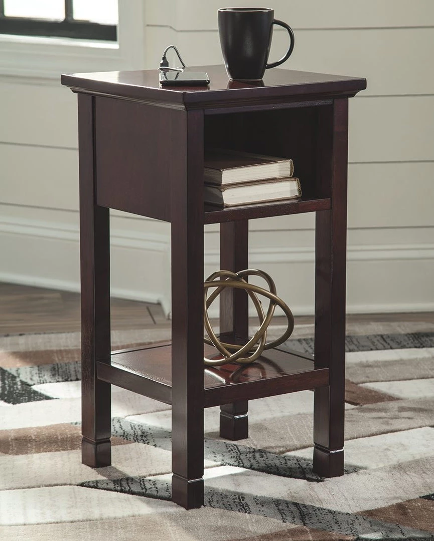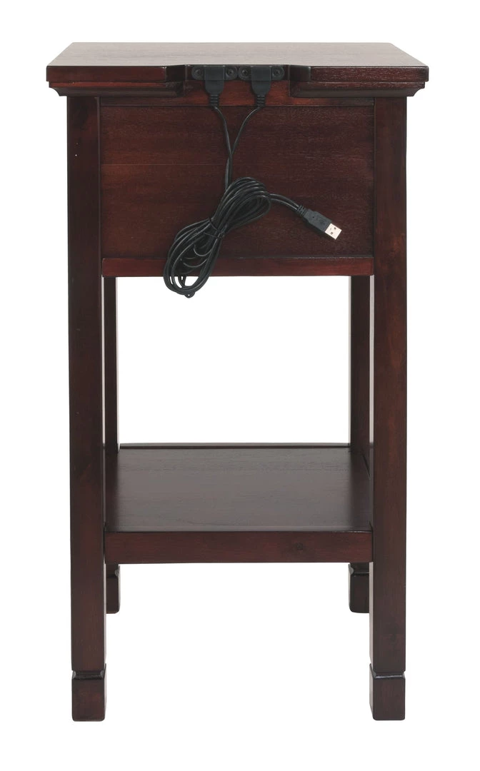 Your home called. It asked for this accent table. Cherry brown finish is simply irresistible, elevating the silhouette with elegance. Clean lines maintain the contemporary aesthetic you crave. Open cubby and bottom shelf provide storage for essentials and decor. Power up your devices with USB ports. How’s that for form and function?
