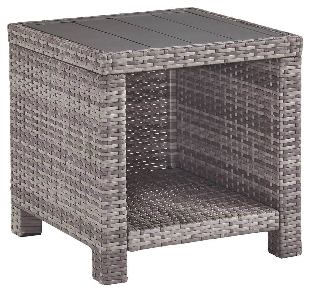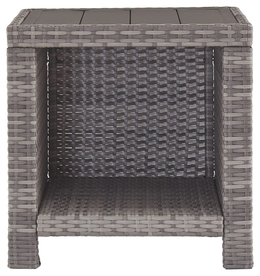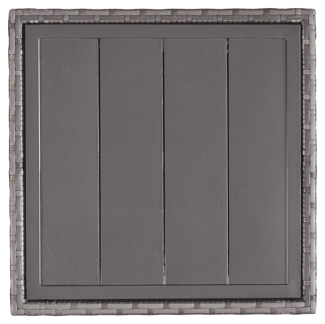 Bring a coastal cool vibe to your outdoor living space with this end table. What looks like rattan is actually handwoven resin wicker in gray with all-weather protection. Rest assured, the planked wood-look top is water and stain resistant. Concealed aluminum frame is powder coated for seasons of carefree use.