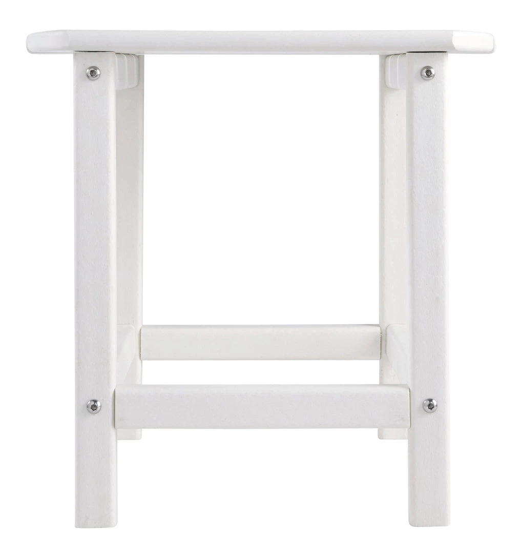 Add cottage-quaint charm to your outdoor oasis with this outdoor end table. Made of a hearty hard plastic material with a touch of texture, it’s sure to weather the seasons beautifully. Designed to shed rainwater, the table’s slatted top with gently rounded corners provides exceptional form and function.