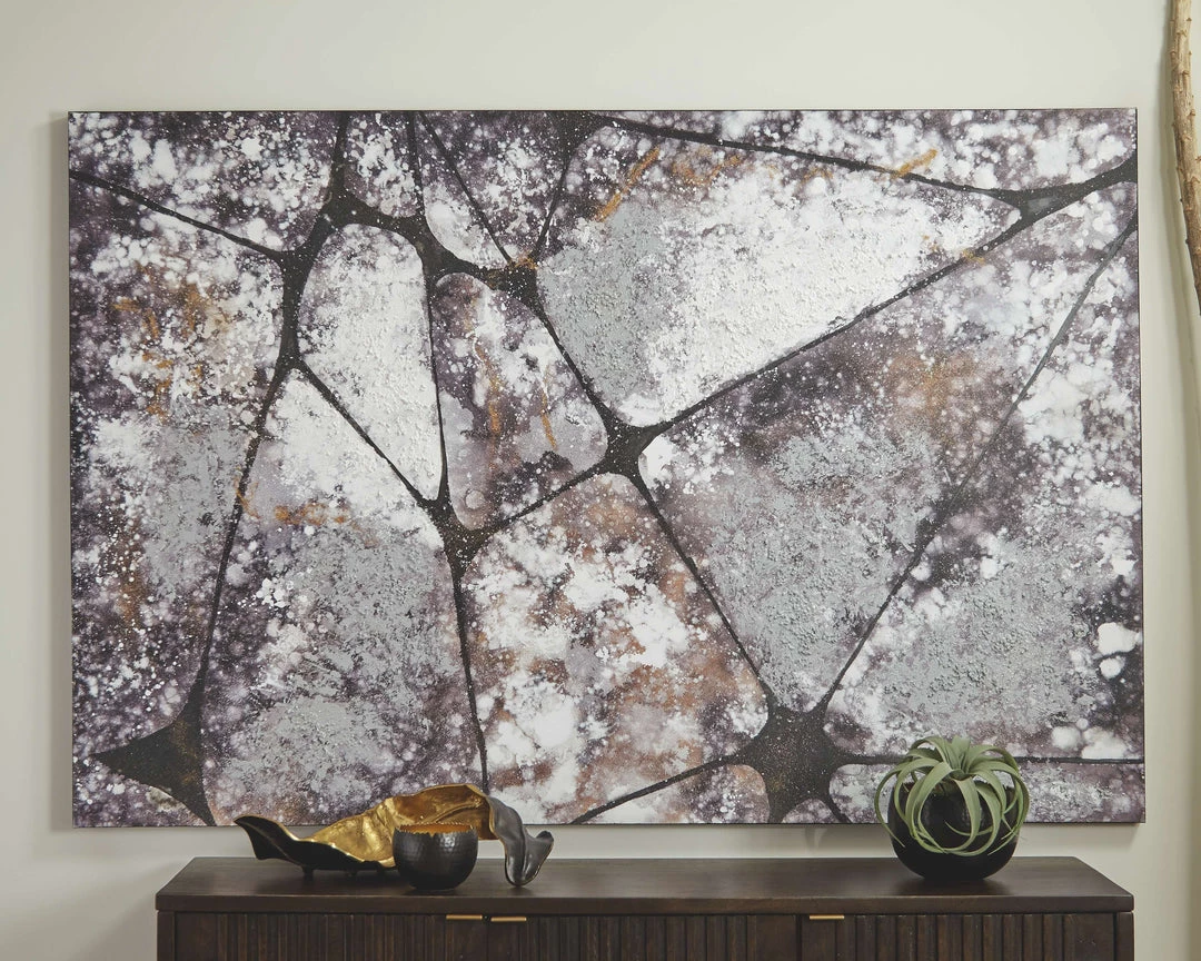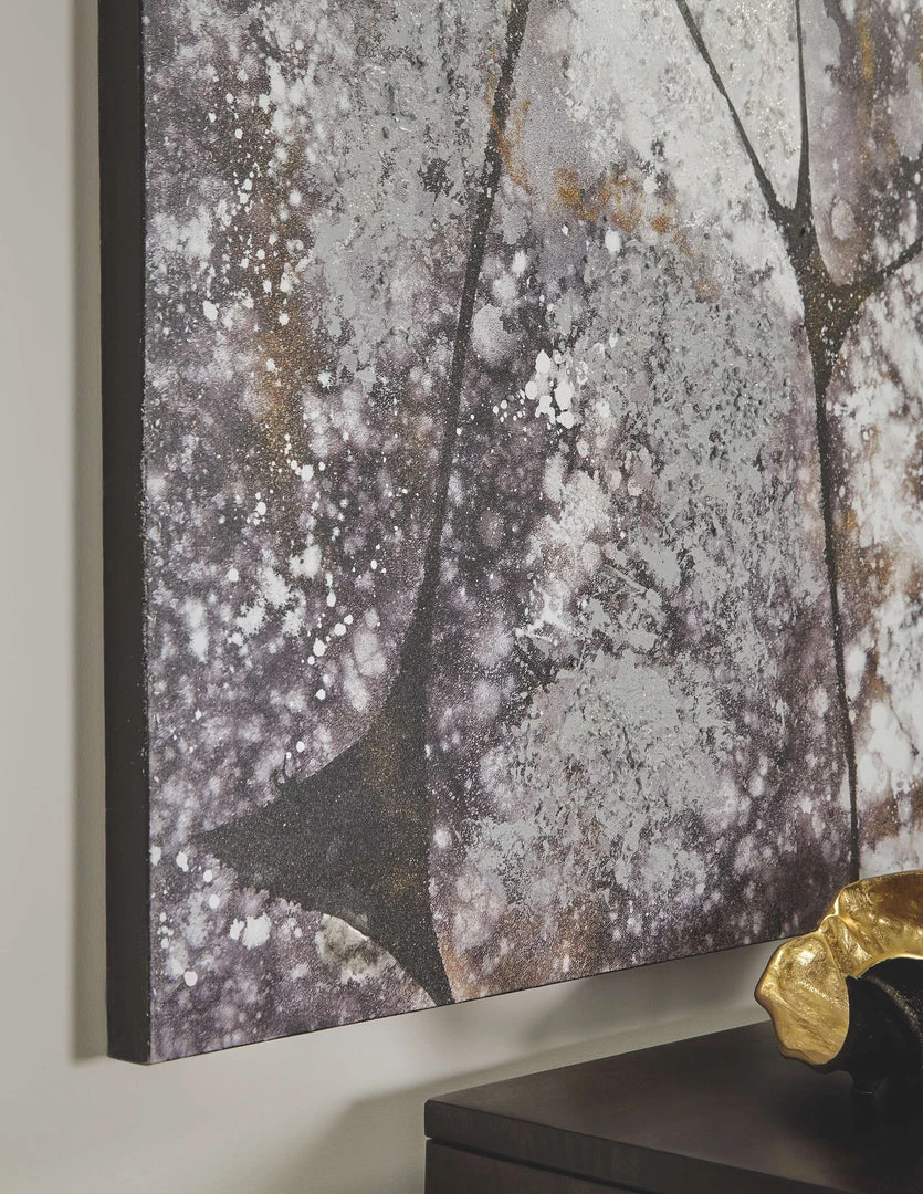 Bring a touch of the unexpected to your art collection with this freeform wall art. Hand-painted in shades of black, white, gray, taupe and gold, this abstract design’s details add that much more drama and stamp of originality.