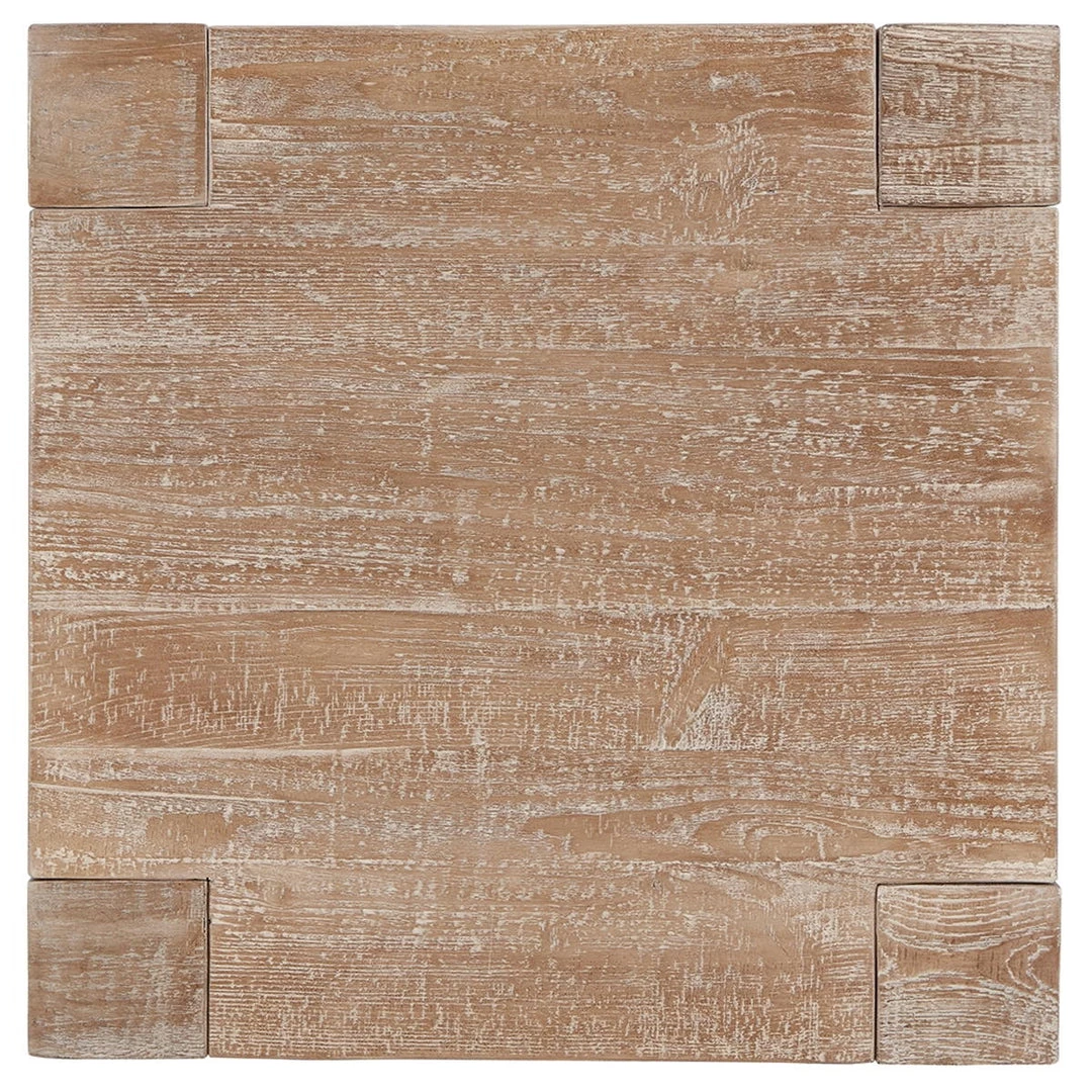 The clean-cut profile of this square end table works equally well in casual and contemporary settings. A distressed brown finish highlights the rich wood grain for a warmly weathered appeal. Dress up the wood table with decor on the lower shelf to suit your style needs.
