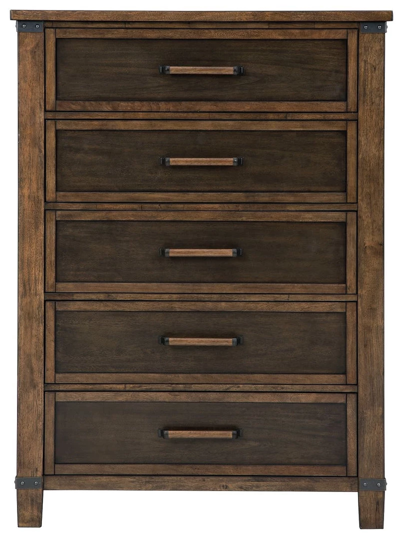 What a fresh interpretation of casual lifestyle design. Inspired by American craftsmanship, but with an elevated sensibility, this chest of drawers blends distinctive details such as metal corner accents and smooth-gliding drawers for an easy-living aesthetic. Those who appreciate the beauty of wood will be doubly impressed with the two-tone walnut and burnt umber finish that imparts an added level of refinement.