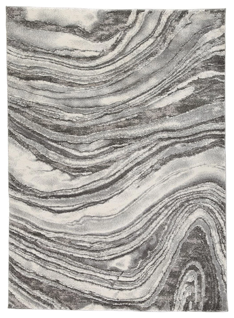 Inspired by gorgeous quartz bands of agate, this area rug displays flowing ribbons of color. Its machine-woven high-low agate design, in cream and shades of gray, features deep, rich hues while maintaining exceptional durability. Comfortable and sophisticated, this accent rug is the ultimate accessory for your contemporary living space.