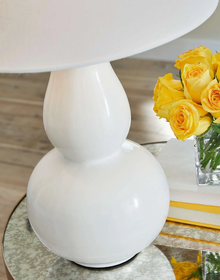 Soft lines and a curvy profile give a stylish look to this ceramic table lamp. Its glossy finish is paired with metallic details and topped with a white empire shade.