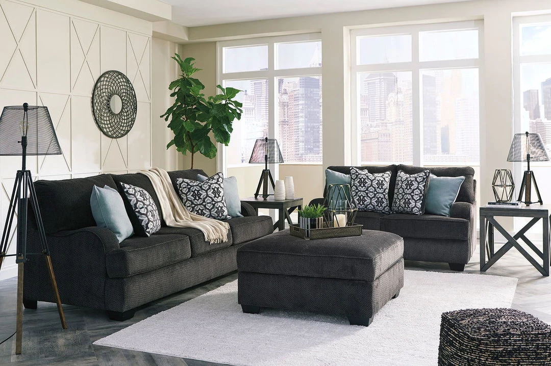 Made from solid acacia in a butcher-block lay up with uneven and rustic surfaces finished in a transparent gray color.