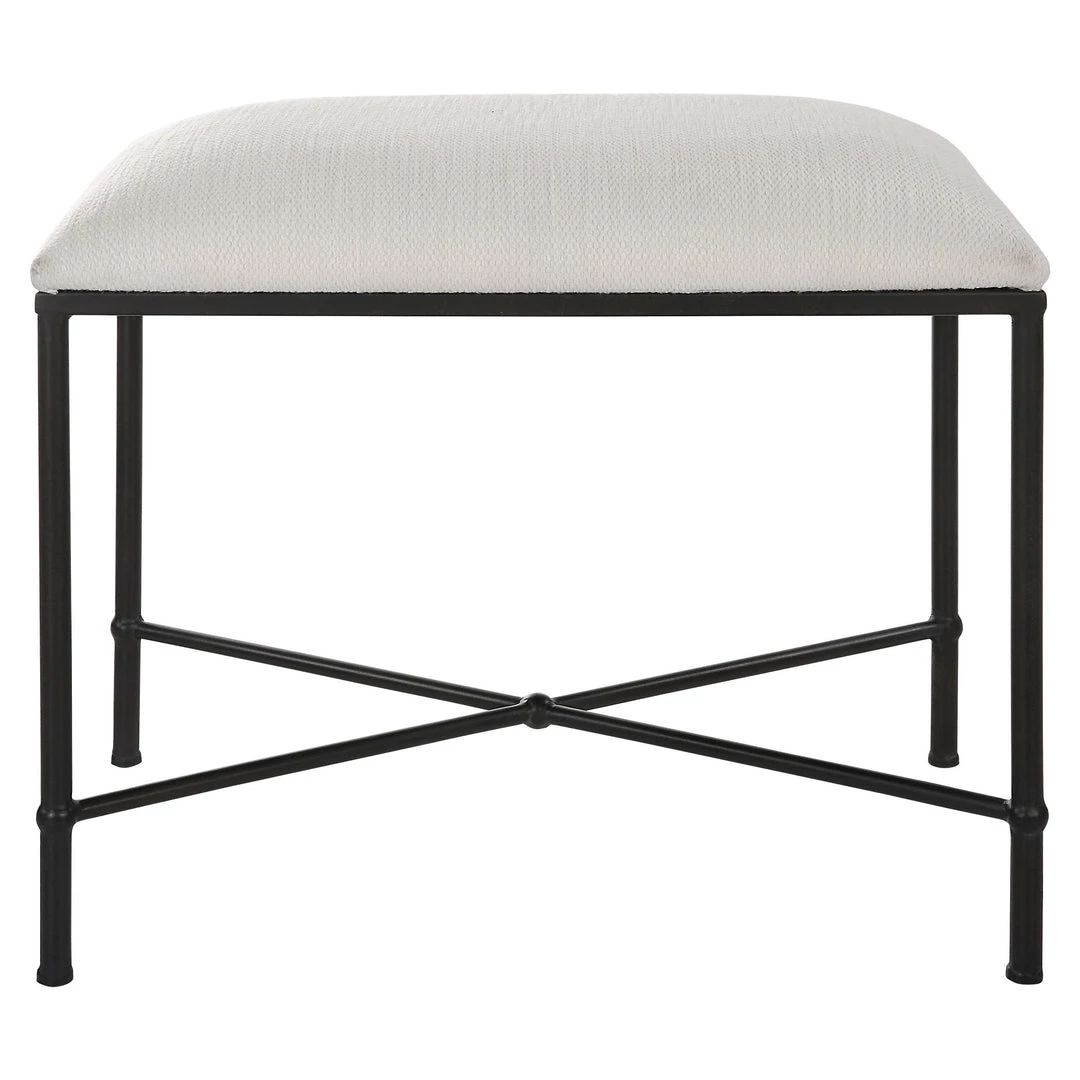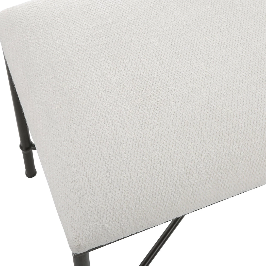 Thoroughly Modern Yet Inspired By The Classics, This Small Bench Displays A Stylish Black And White Look Featuring An Iron Frame In A Satin Finish, Upholstered In A Crisp White Textured Fabric.