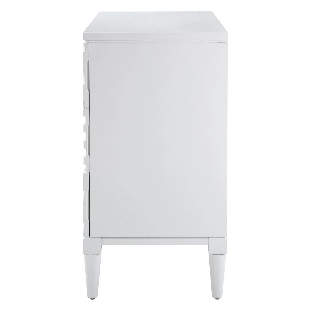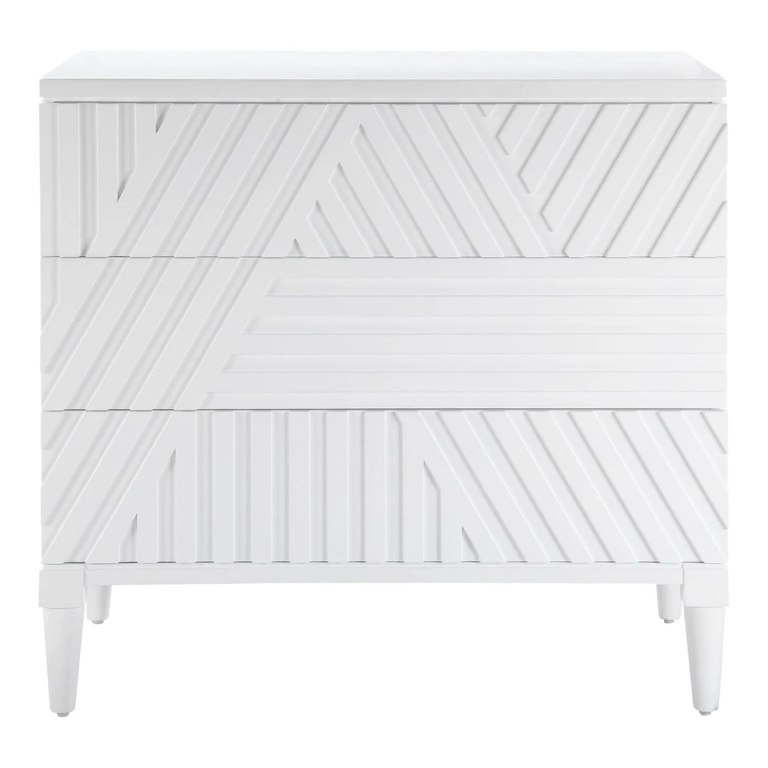 Refreshingly Modern, This Geometric Accent Chest Features Carved Drawer Fronts, Creating A Monochromatic Statement In A Crisp White Finish.