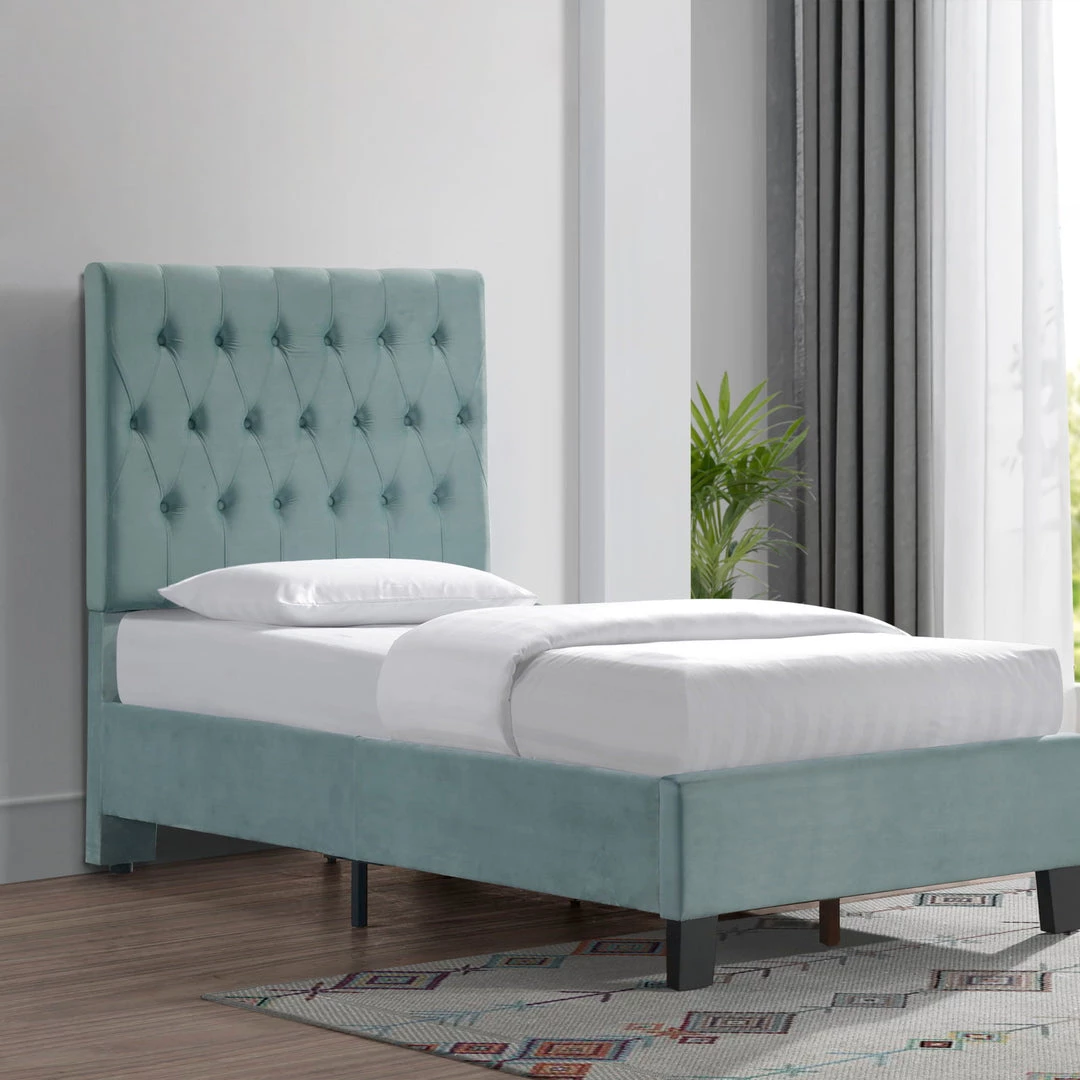 - The Amelia twin upholstered bed bridges the gap between classic and contemporary, taking your style from simple to elegant
