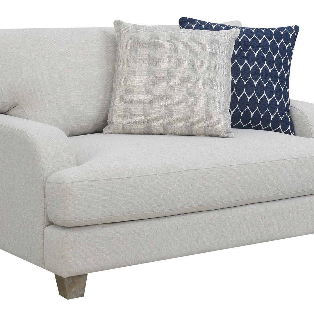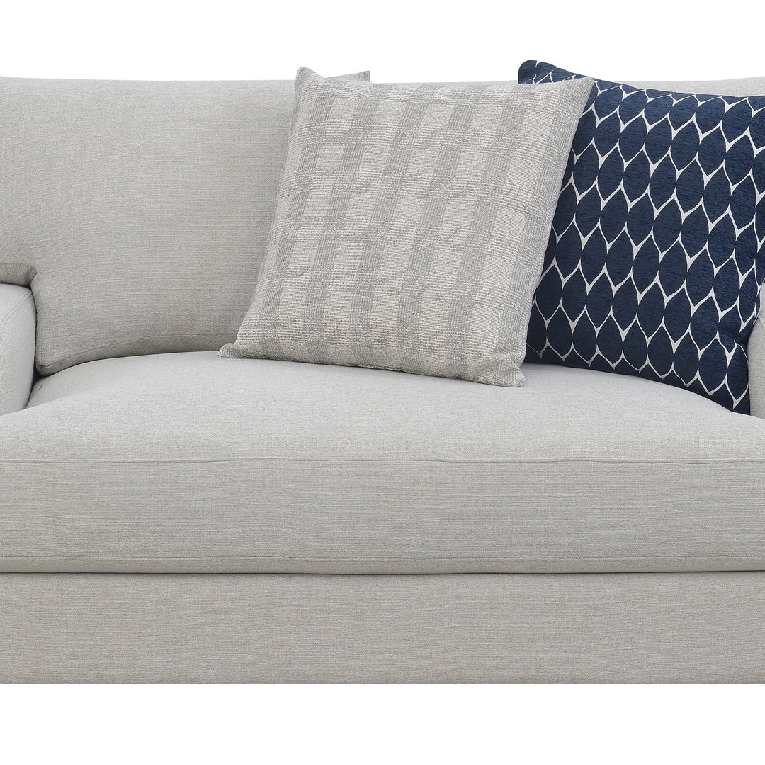 When you want to freshen up your living room, the beautiful Laney collection is at the ready. The classic silhouette is given a subtle update in this transitional design. It features large, comfy cushions in subtle harbor gray color with patterned accent pillows for a pop of color. Whether you’re settling in with a good book or entertaining for the evening, you’ll love the Laney collection for years to come.