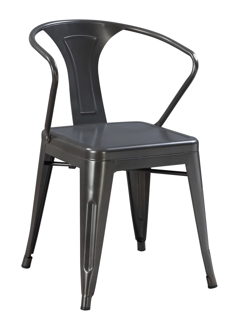 - The Dakota III dining arm chair features an industrial, modern gunmetal finish that compliments a range of styles and blends with your existing décor