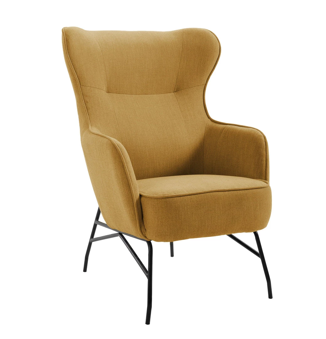 When looking for comfort and sophistication in your den or study, the Franky accent chair fits the bill. Textured performance fabric with piped edges and stitching detail sits atop black metal legs creating a contemporary look that is rich and inviting.