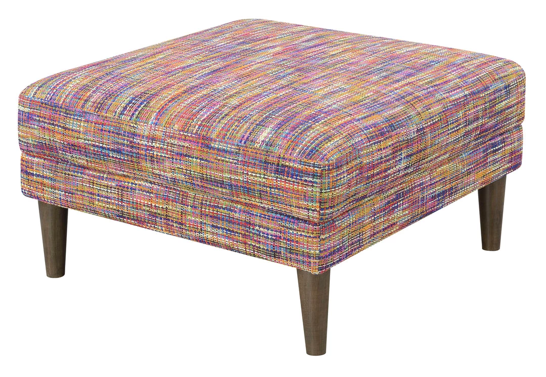 - The Jax ottoman brings a bold splash of color with mid-century modern style