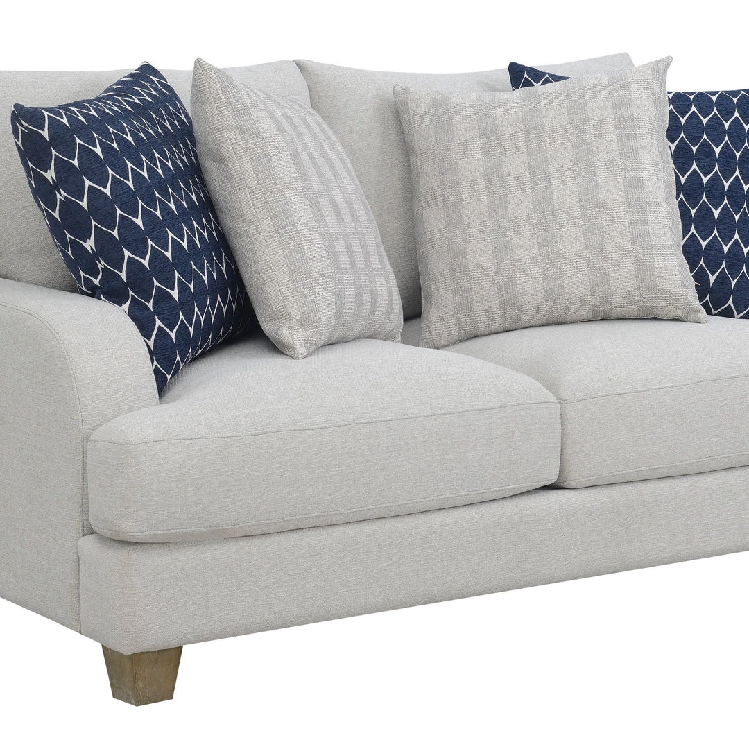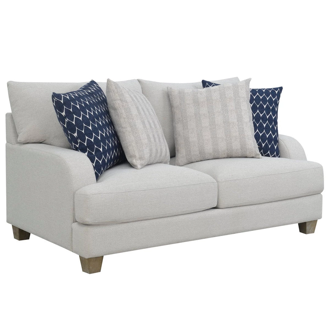 When you want to freshen up your living room, the beautiful Laney collection is at the ready. The classic silhouette is given a subtle update in this transitional design. It features large, comfy cushions in subtle harbor gray color with patterned accent pillows for a pop of color. Whether you’re settling in with a good book or entertaining for the evening, you’ll love the Laney collection for years to come.