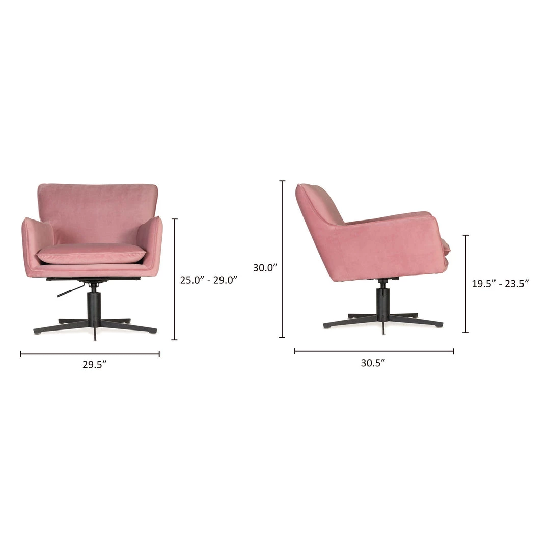 At Sundays, and in life, it’s important to see things from a different perspective. Changing your view is as easy as twisting your hips in this stylish swivel chair. Its soft pink color palette will make your home feel fresh like spring. Made with 100% velvet upholstery for a rich luxurious finish. The challenge is getting up from its foam-padded, deep spacious seat. Its hydraulic lift and swivel base make it too easy to enjoy the 360 degree views of your home or office.