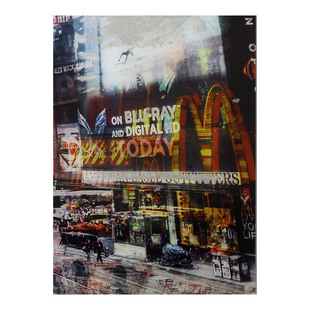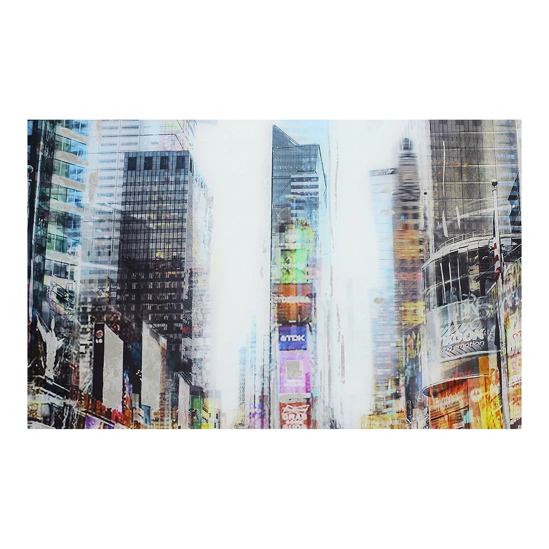 Start spreading the news. This abstract piece evokes the famous metropolis with bright, impressionist colors. A unique hand-painted piece of wall décor.