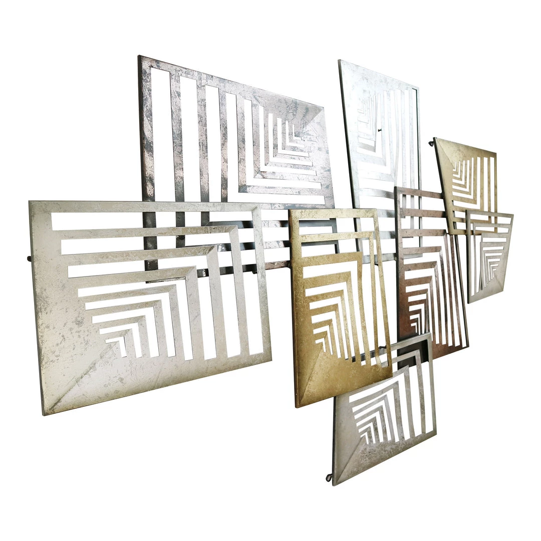 Change it up from a simple painting or photo, and decorate with pizazz. This three-dimensional, geometric art will add a sophisticated look and feel to your walls. Metal squares, cut into a repeating pattern and finished in gold and silver.