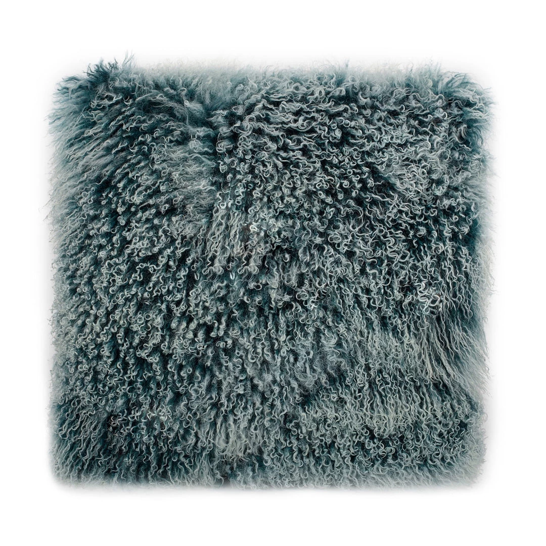 Perfect for adding texture to your living area, this large pillow is upholstered in blue lamb’s fur for ultra-softness and chic design.