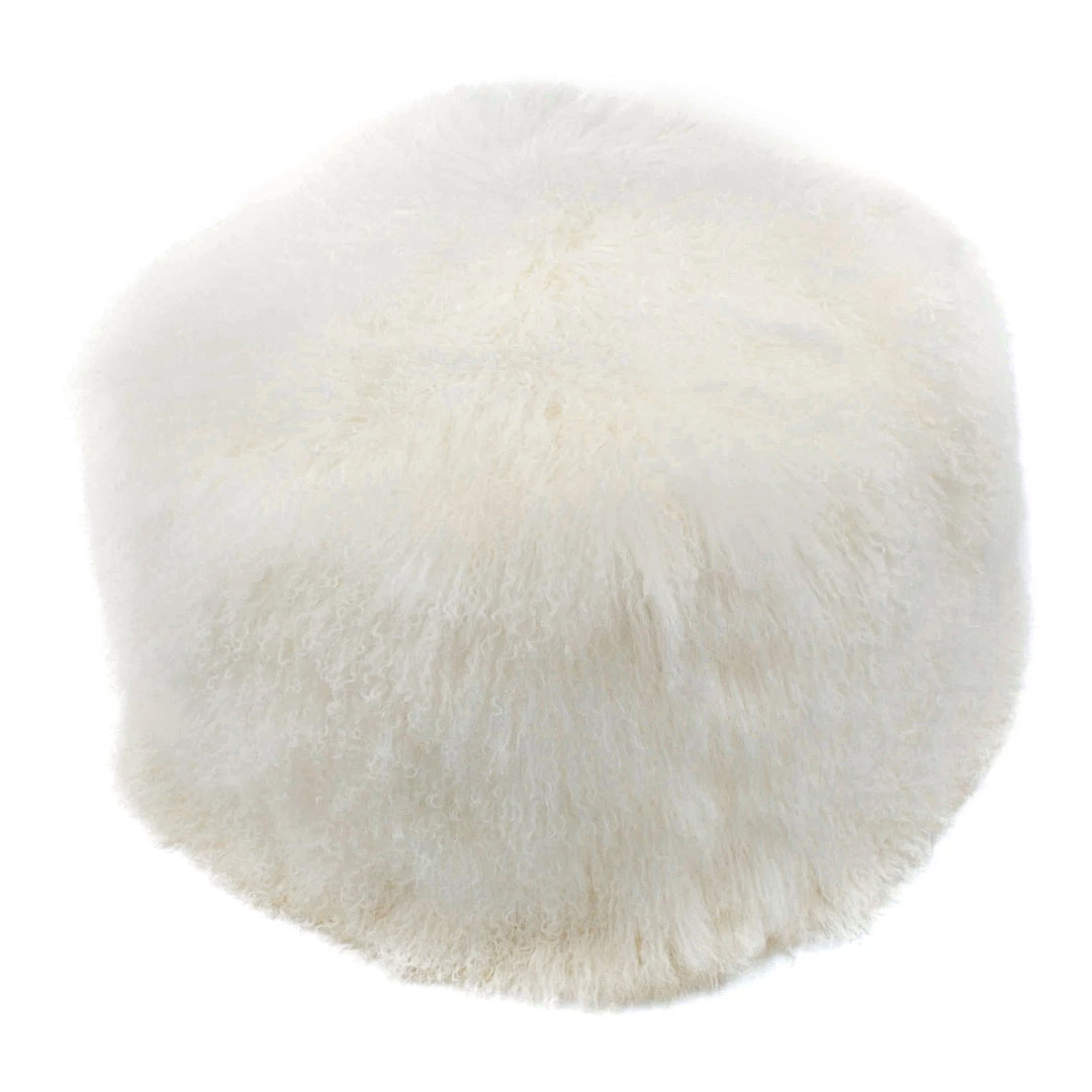 Perfect for adding texture to your living area, this pouf is upholstered in white lamb’s fur for ultra-softness and chic design.
