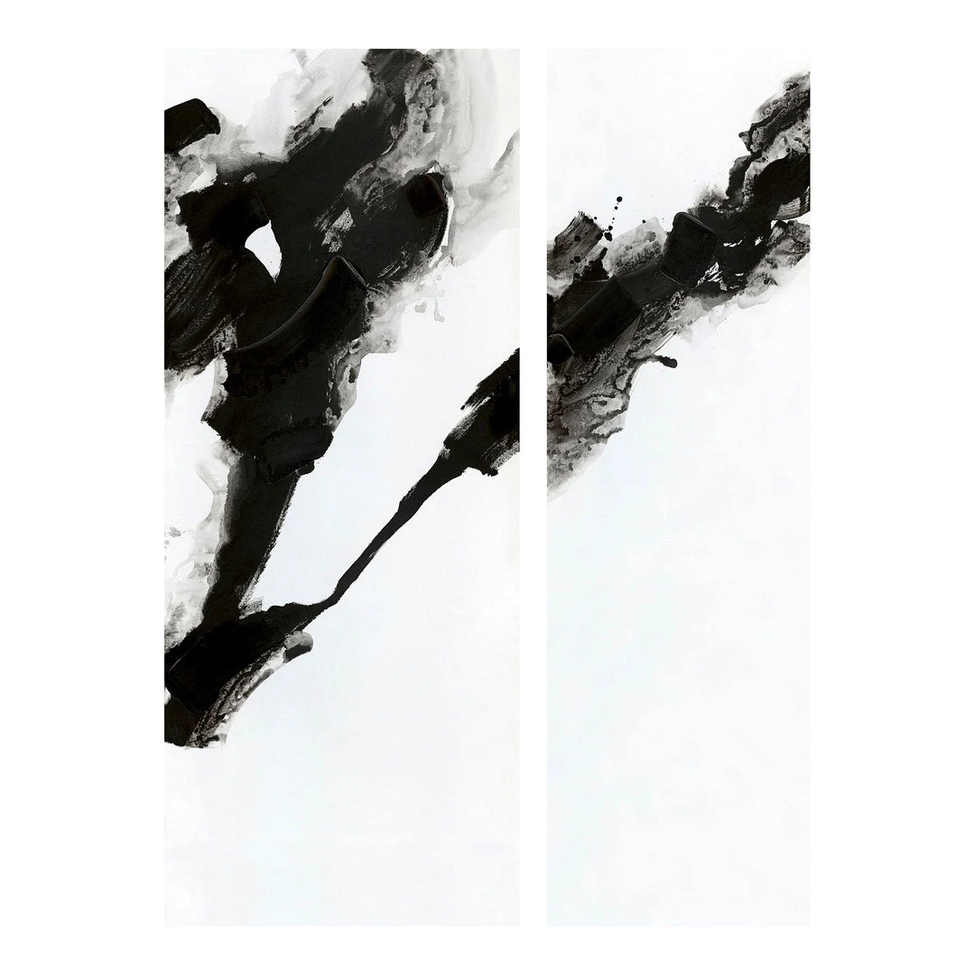 This complimentary set of 2 abstract paintings features bold black and white splashes of acrylic.
