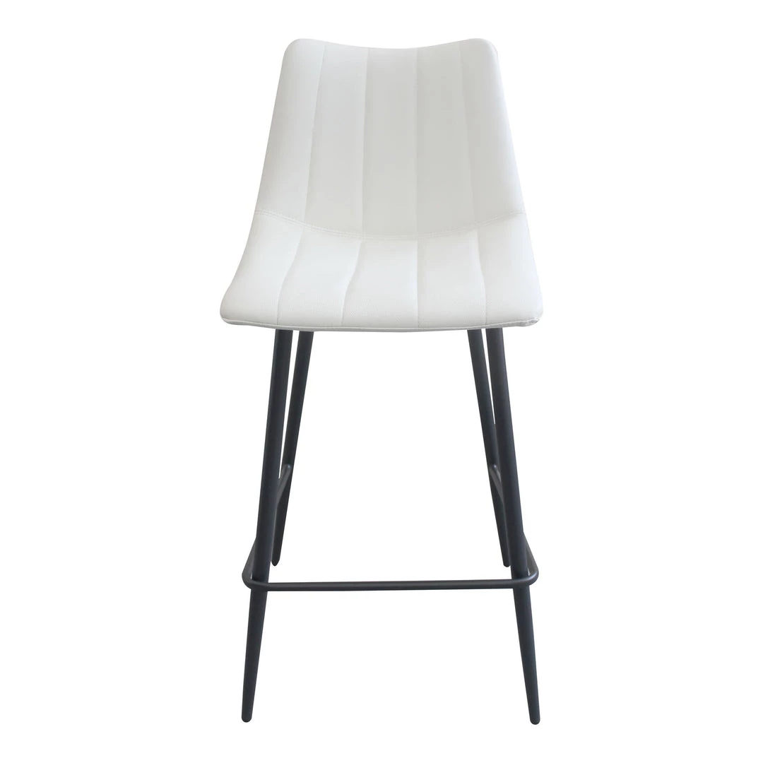 This counter stool features sleek contemporary design and white faux-leather upholstery. Detail and comfort make it ideal for the dining room.