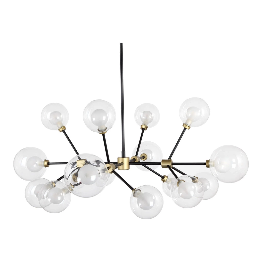 The Andromeda pendant lamp features 15 glass orbs, branching from sleek iron rods. Contemporary lighting at its finest.