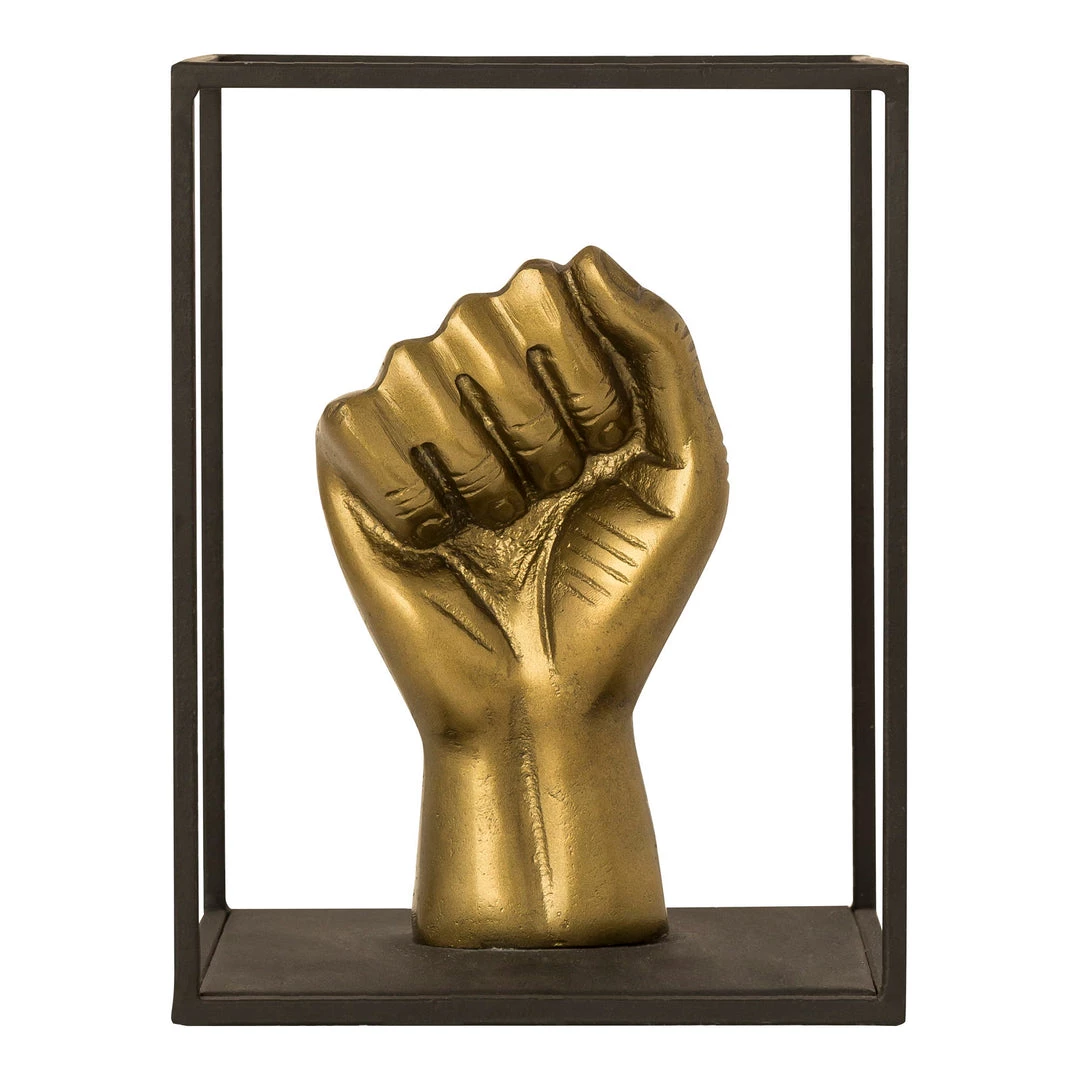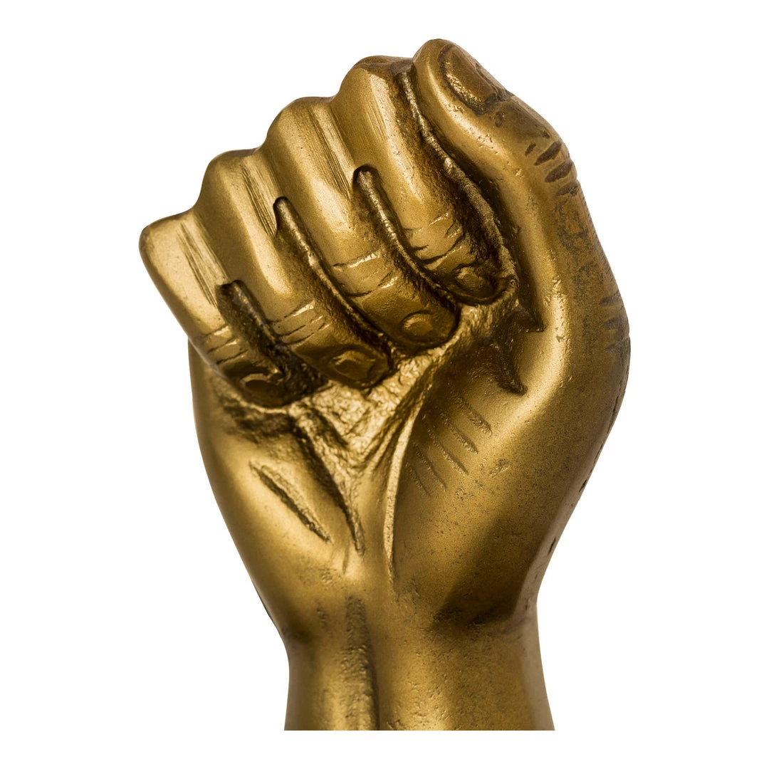 This statue represents pure triumph, with the bronze fist raised in a symbol of strength. A bold statement piece for your living space.