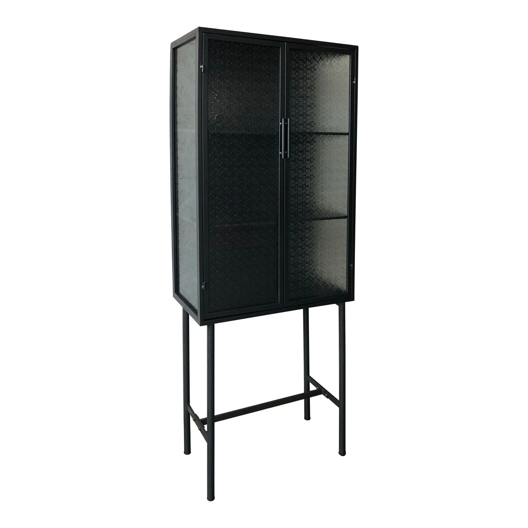 Black metal construction in a contemporary style give the Zakk its striking appeal. Two tall swinging doors and plenty of storage make it the ideal cabinet.