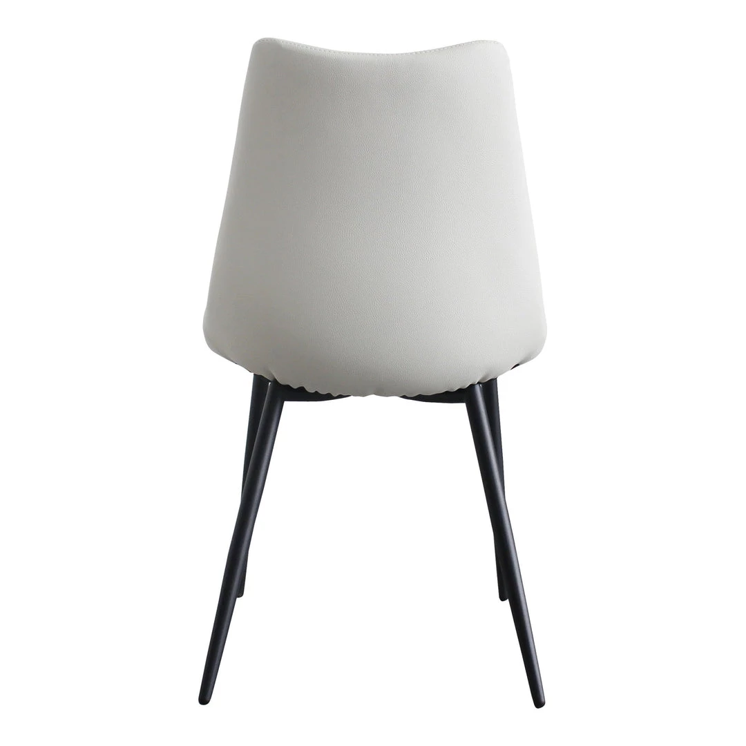 A striking contemporary chair for your dining room. Featuring stylish vertical line stitching, white vegan leather upholstery and a soft curved seat, this dining chair offers ultimate relaxation.