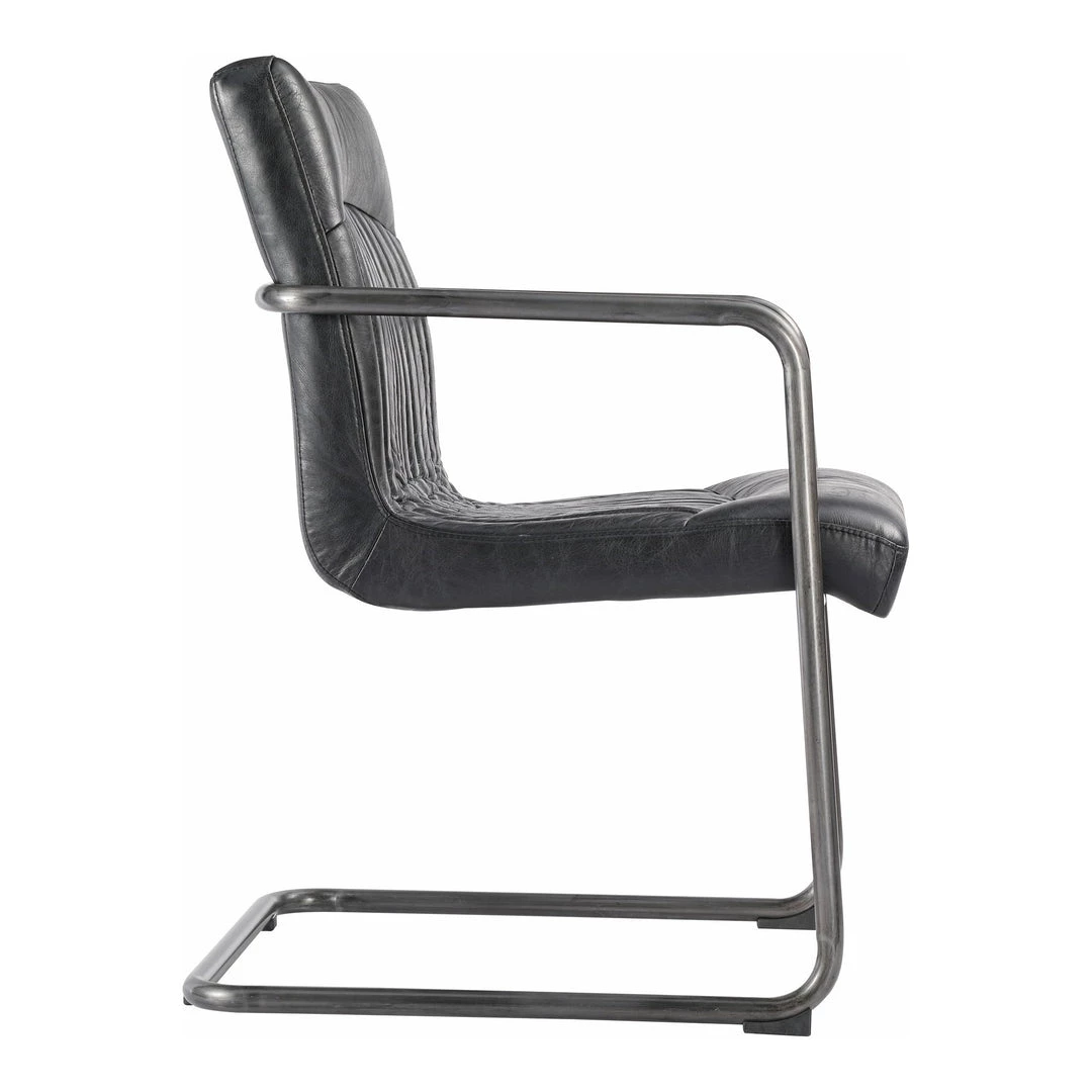 With an industrial frame and distressed top-grain black leather upholstery, the Ansel armchair adds industrial originality to your dining area.