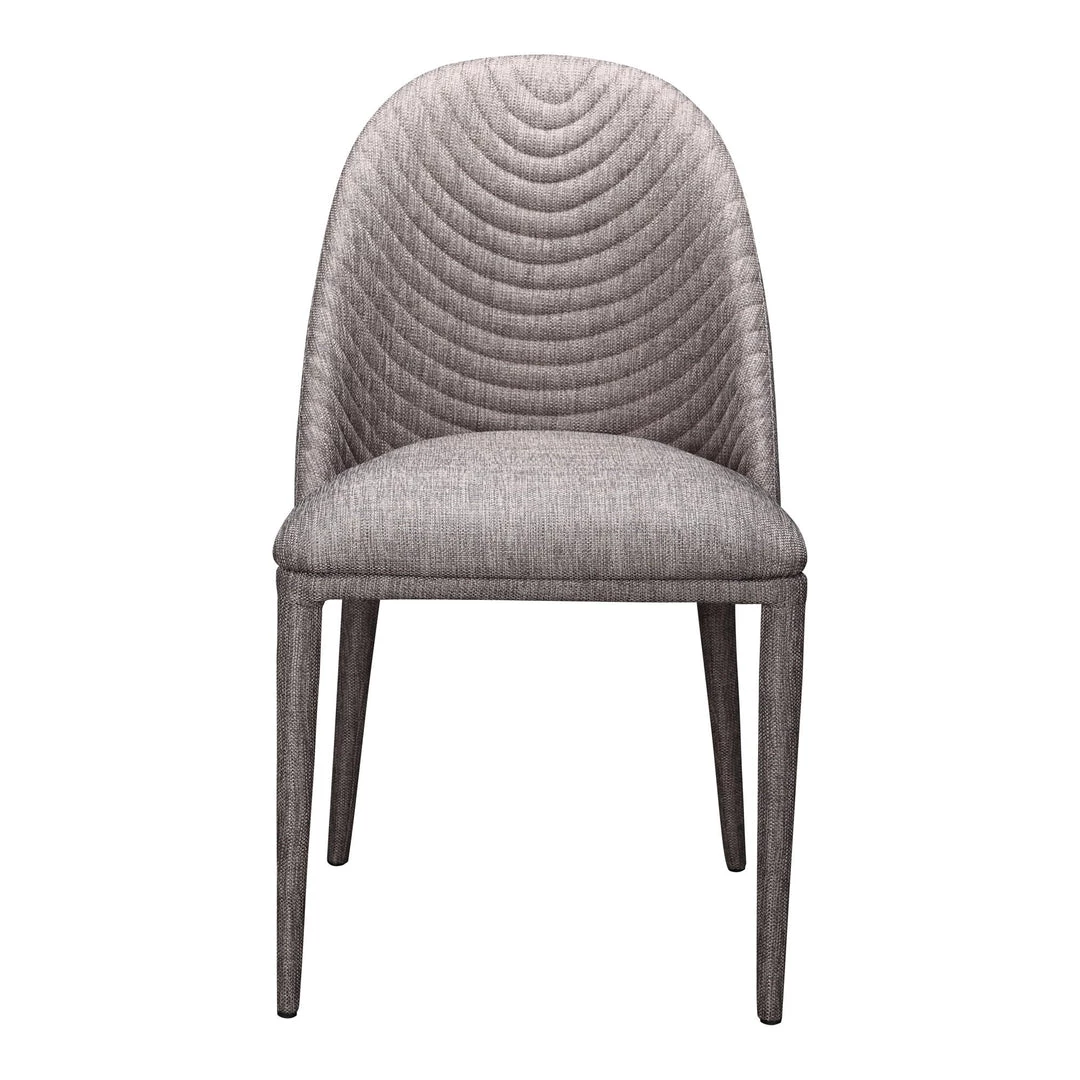 The delight is in the details with this retro dining chair. Ribbed stitch pattern, fabric-covered legs, and subtle grey upholstery make it an irresistible accent piece.