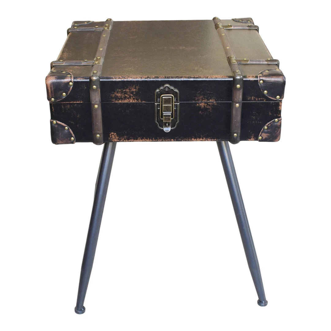 This travel inspired table features a lift-up top for you to hide you treasures. Detailed trim and hardware give an authentic look to the piece.