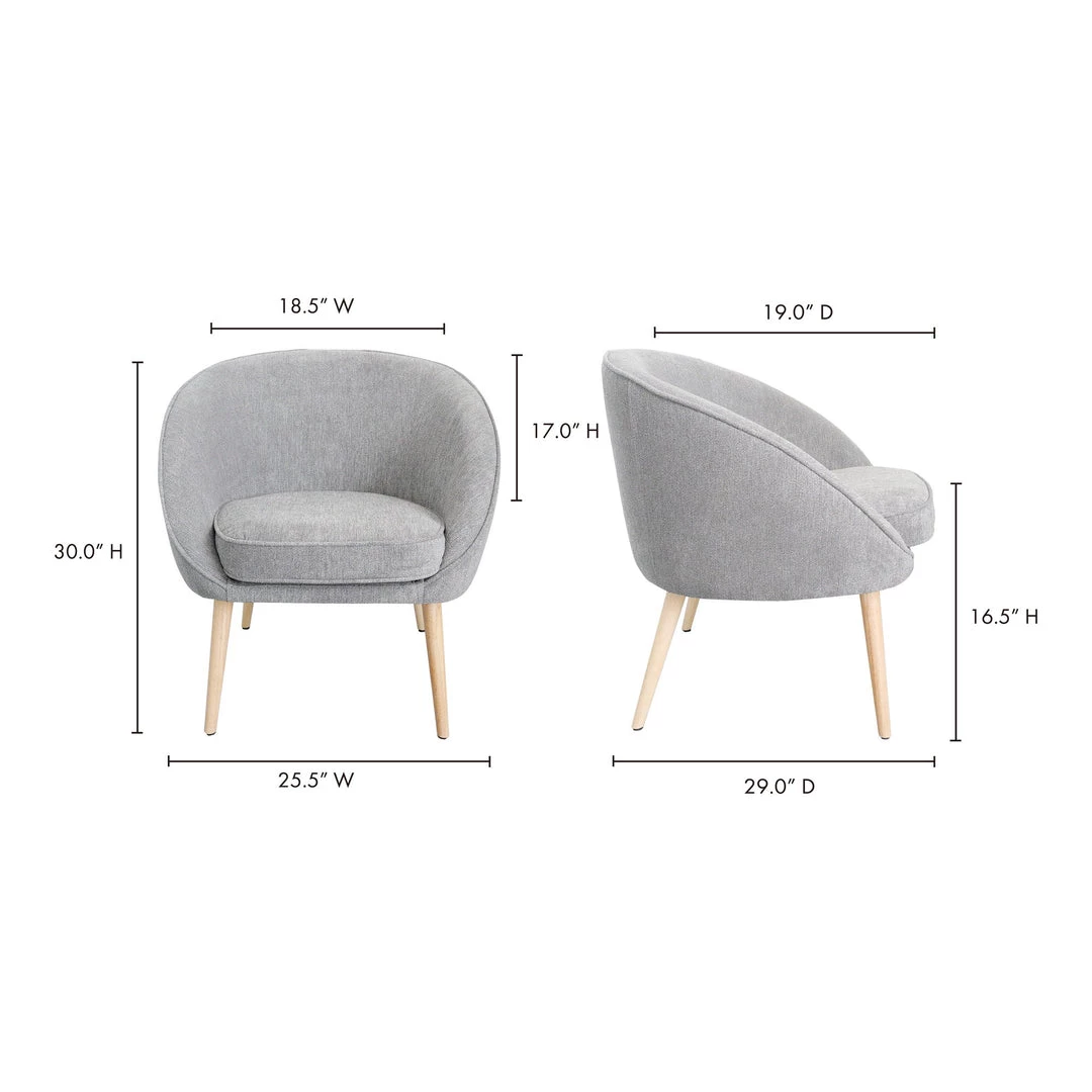 A stylish, versatile addition to living rooms and bedrooms, this accent chair makes everyday lounging a more lavish occasion with its elegant, curvesome form and soft, monochrome fabric.