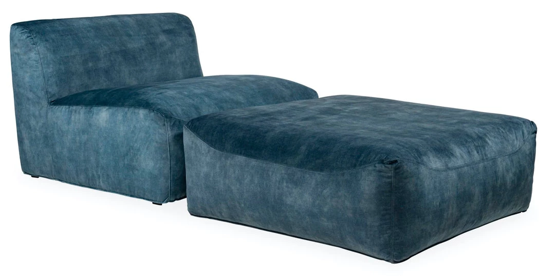 Turn tradition on its head with a modular family of comfortable chairs and ottomans. These ones may be traditional in their velvety soft material, but are totally modern and sleek in shape.