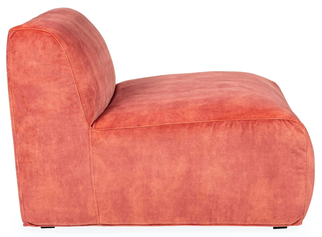 Turn tradition on its head with a modular family of comfortable chairs and ottomans. These ones may be traditional in their velvety soft material, but are totally modern and sleek in shape.